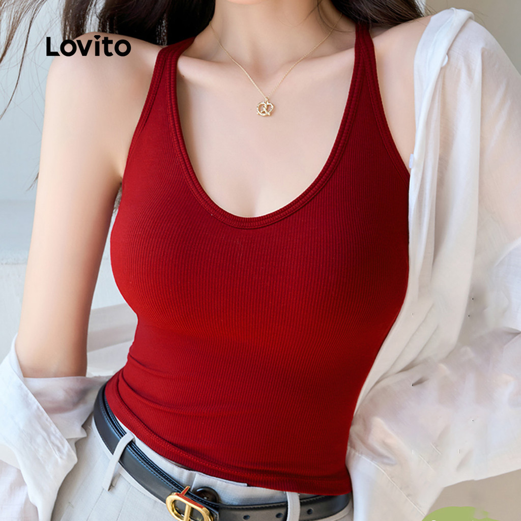 Lovito Blusa Feminina Elegante Para Festas E Momentos De Lazer Na Primavera/verão Na Cor Vermelha L157LD351