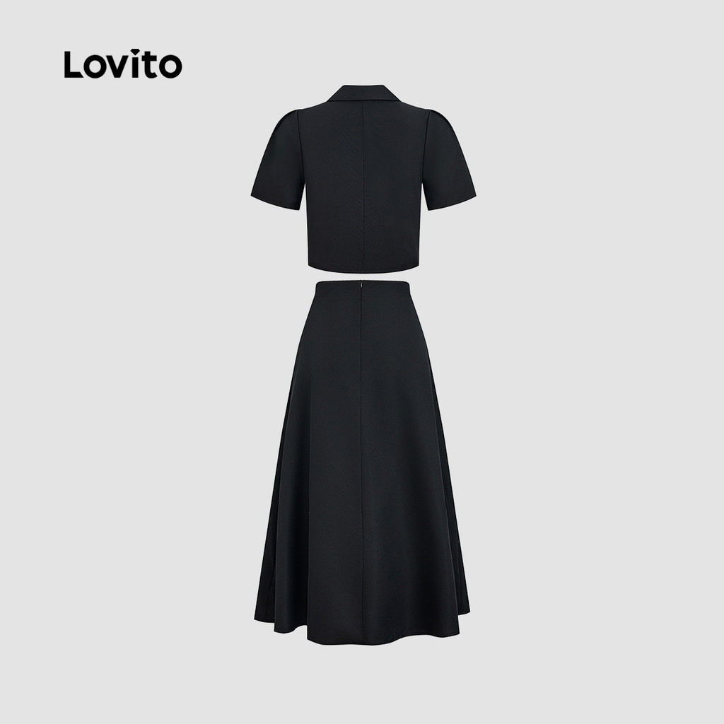 Lovito Tops ou Calças Casuais com Botões Frontais para Primavera/Verão Top Feminino Preto L165ED1468