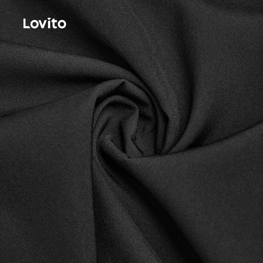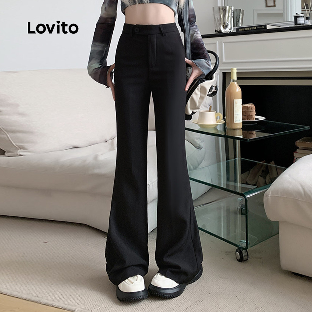 Lovito Calça Casual com Botão Primavera/verão Preta para Mulheres. L172LD1279
