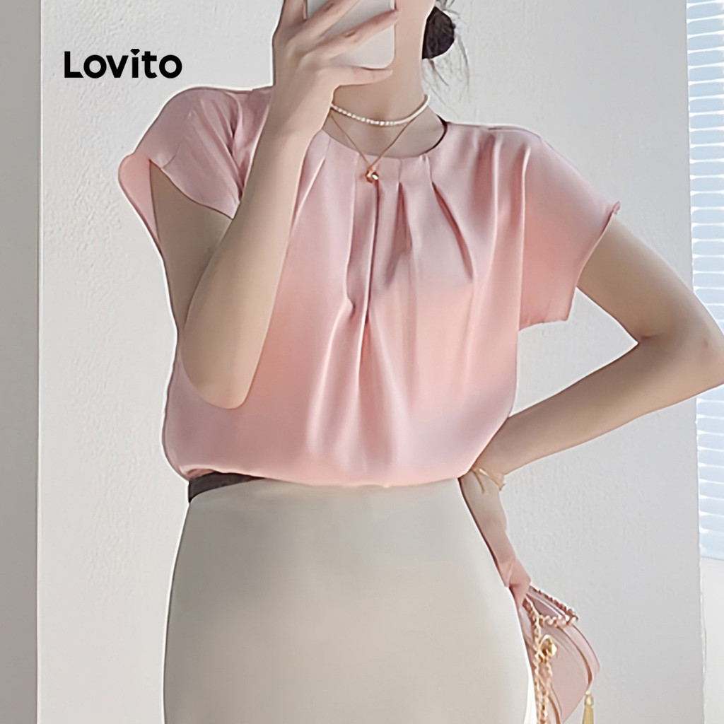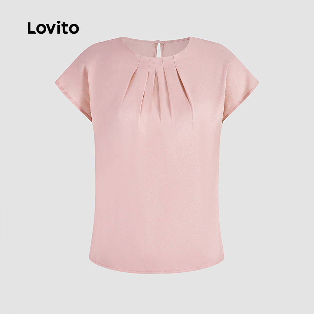 Lovito Blusa Casual feminina lisa com pregas L132ED262