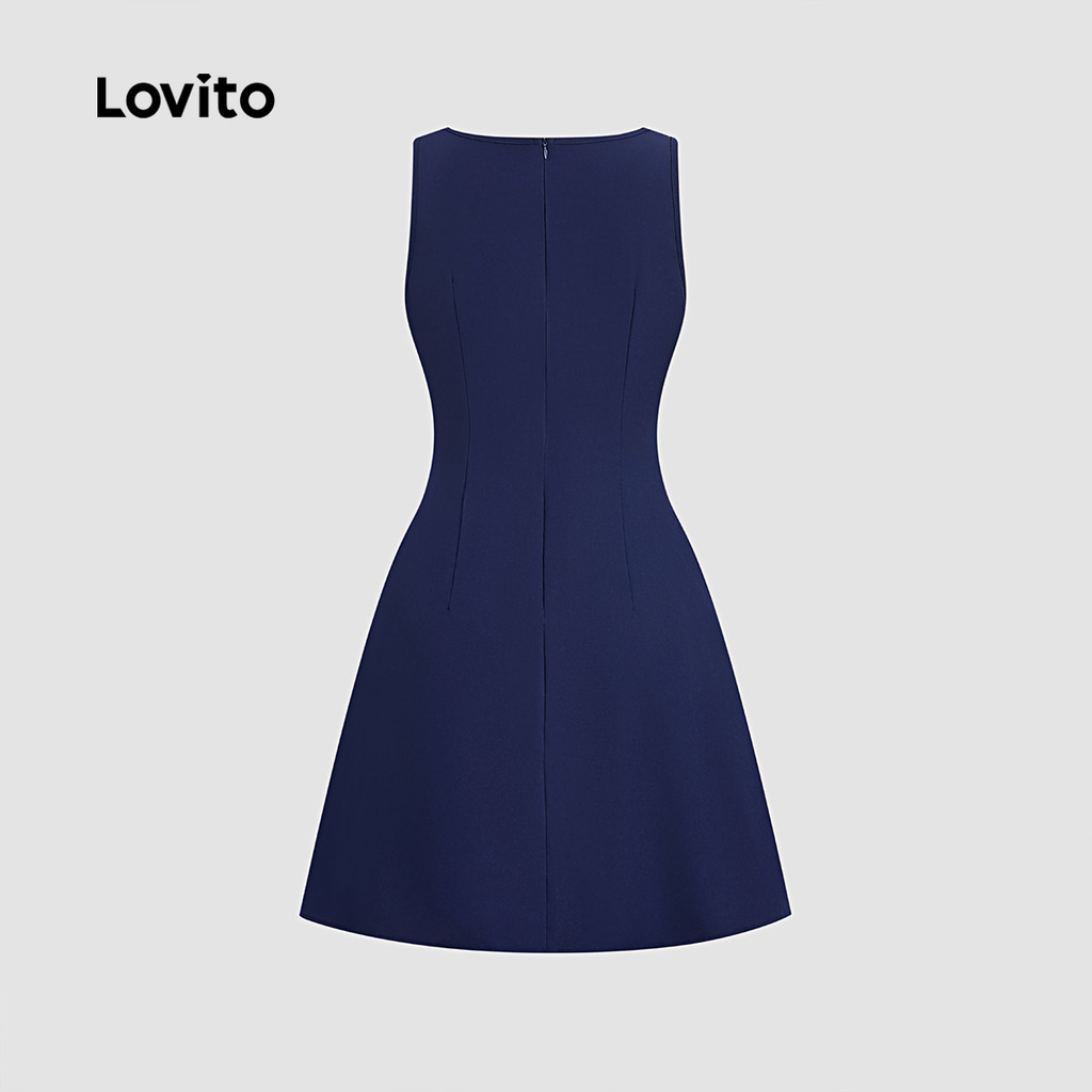Lovito Vestido Sofisticado Plissado para Primavera/Verão Azul-marinho Feminino L149LD323