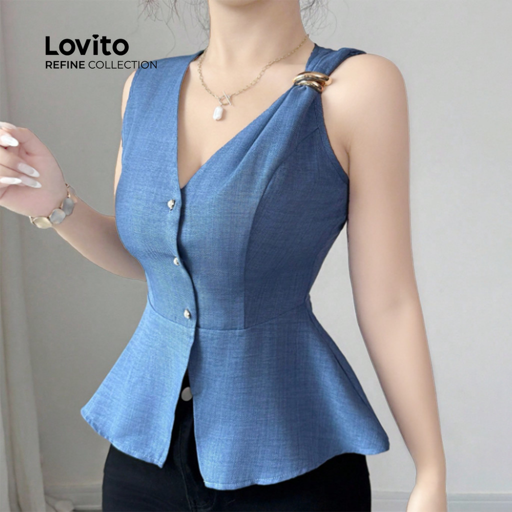 (Lovito Refine) Elegante Top com Botões Frontais Metal Primavera/verão Marrom para mulheres LR23E020