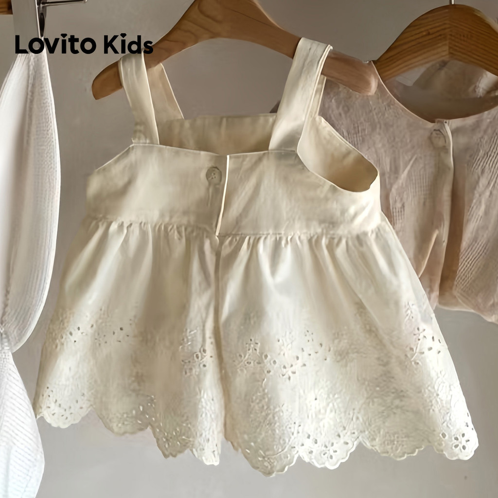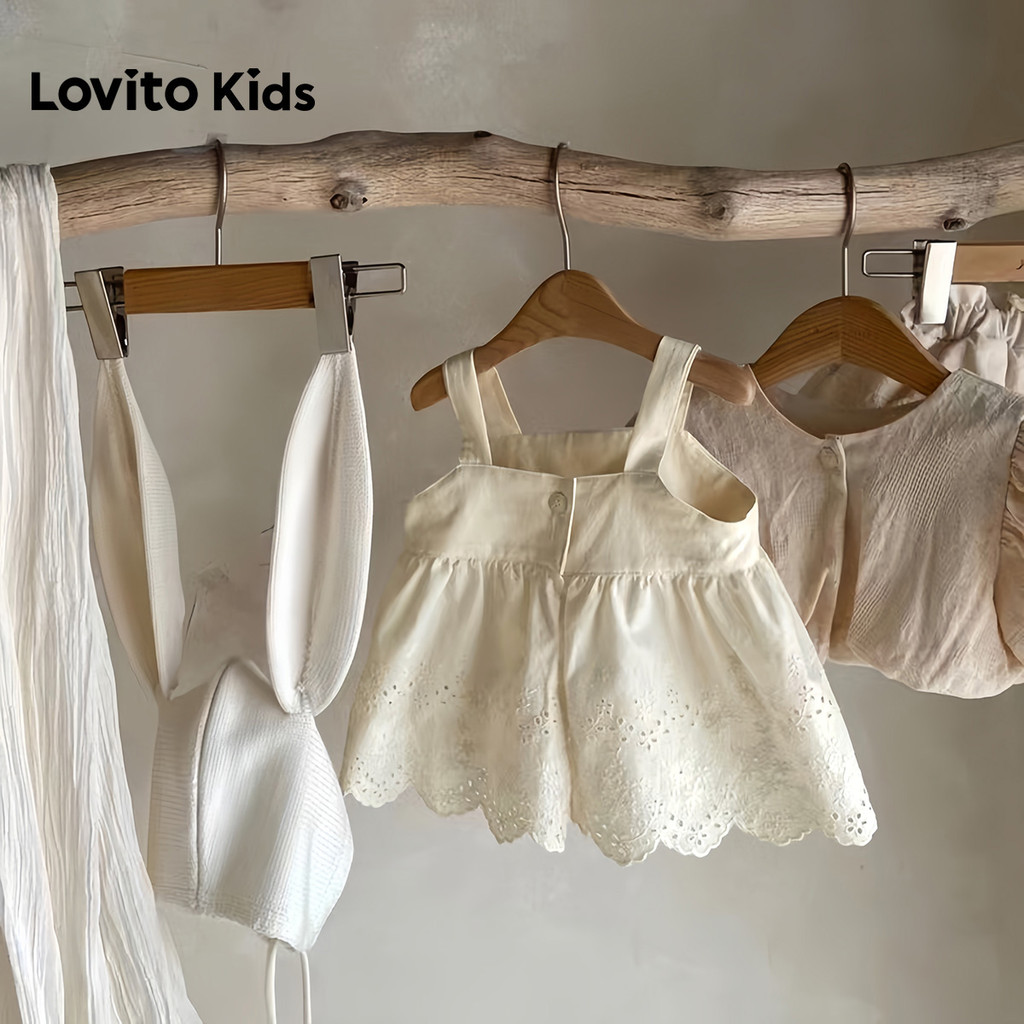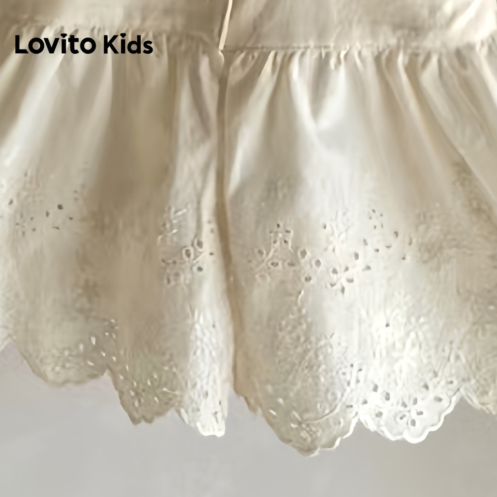 Lovito Kids Vestido Casual com Bordado de Ilhós Na Cor Branco Off para Bebê Na Primavera/Verão LNL128250