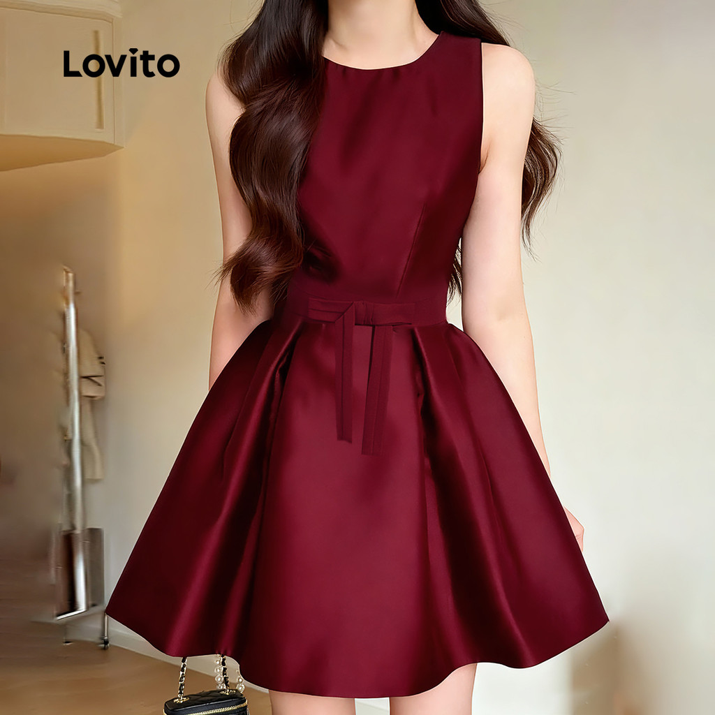 Lovito Vestido Elegante Com Laço Cor Vinho Para Mulheres Primavera/verão L157LD350