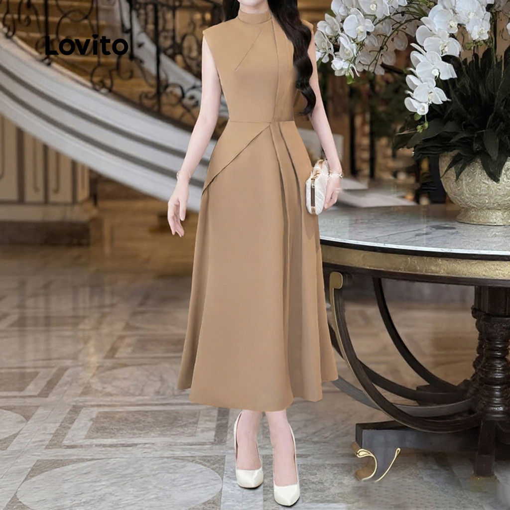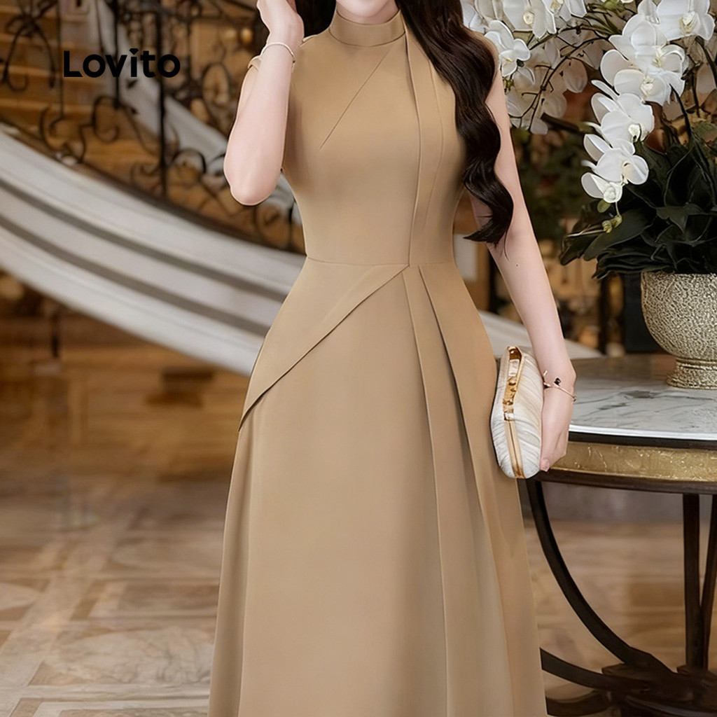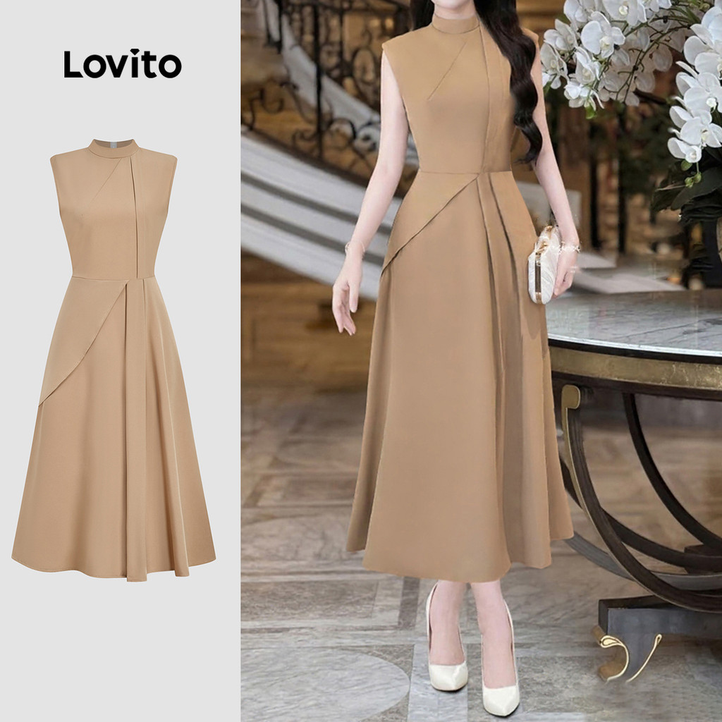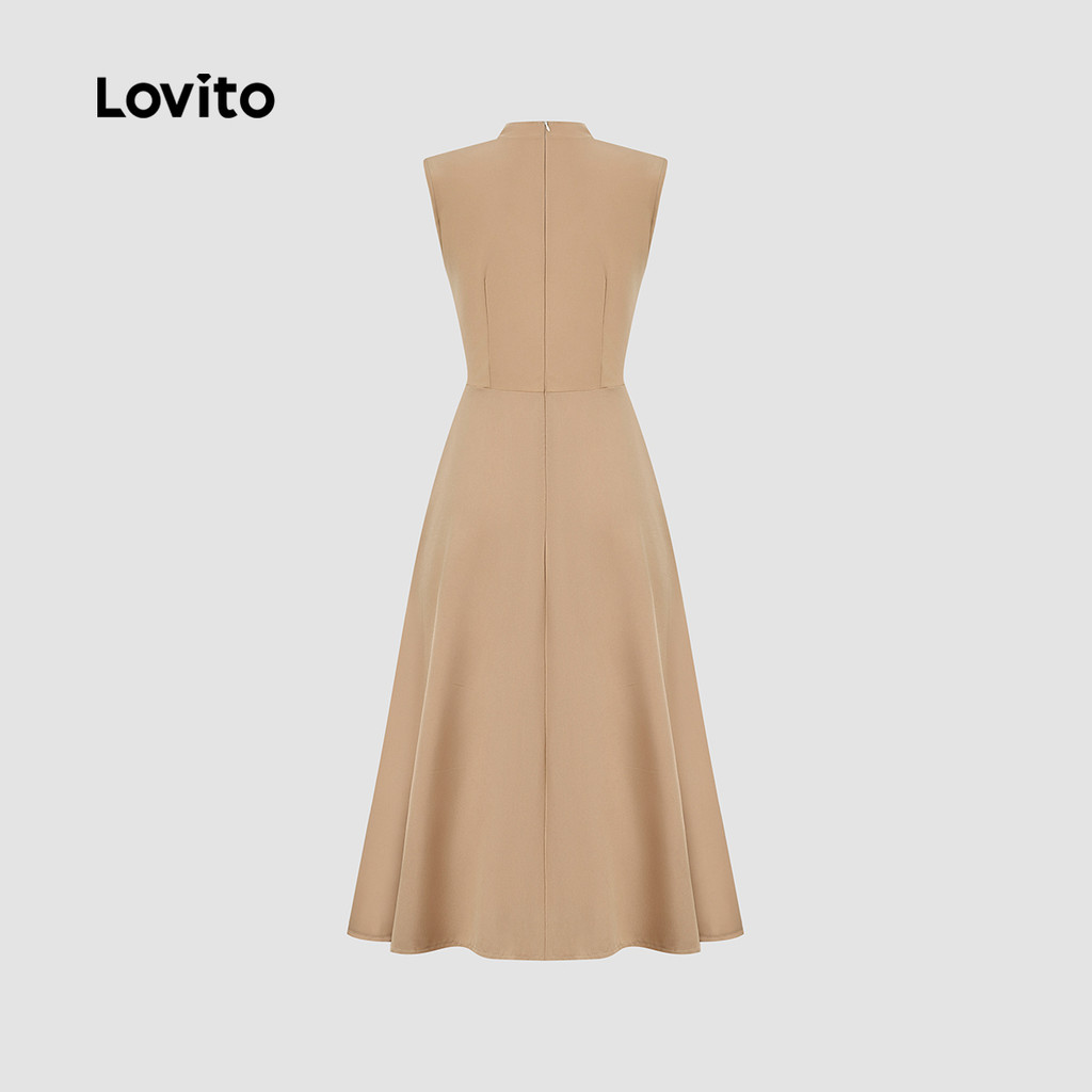Lovito Vestido Elegante para Ir Ao Trabalho Assimétrico de Verão/outono Cáqui para mulheres L165ED1586