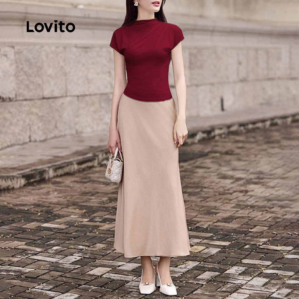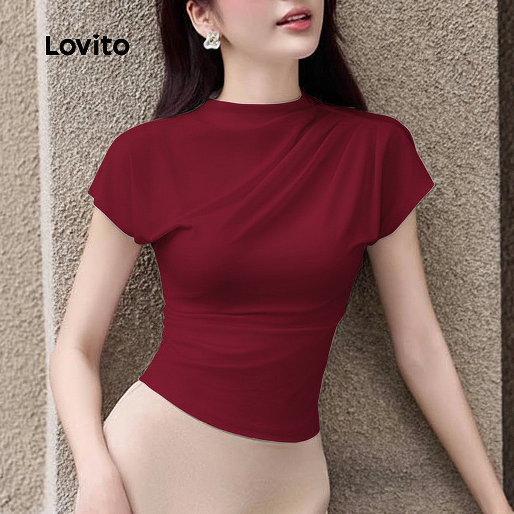 Lovito Camiseta Casual Plissada Simples Primavera/verão Branca para Mulheres LK2ED1181