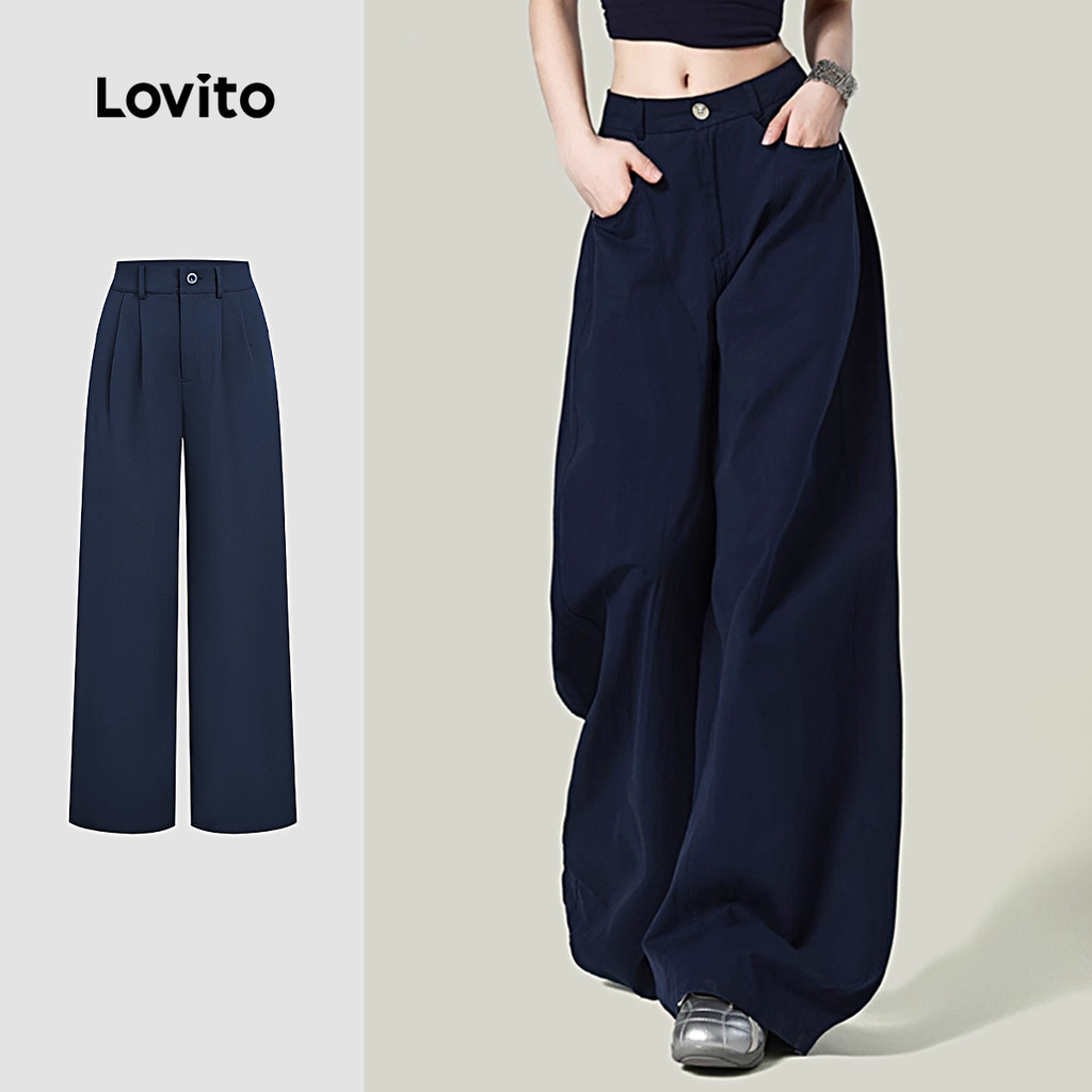 Lovito Calça Casual Feminina Azul Marinho com Zíper para Primavera Verão L171ED044