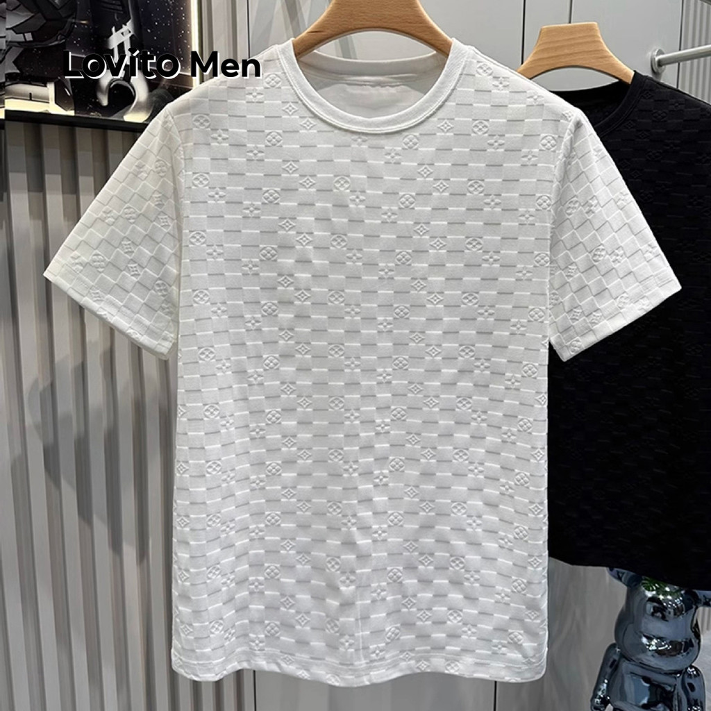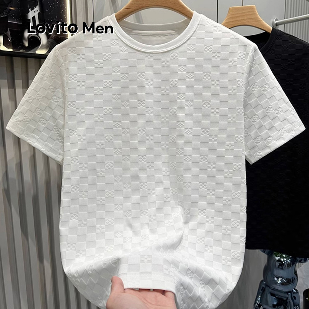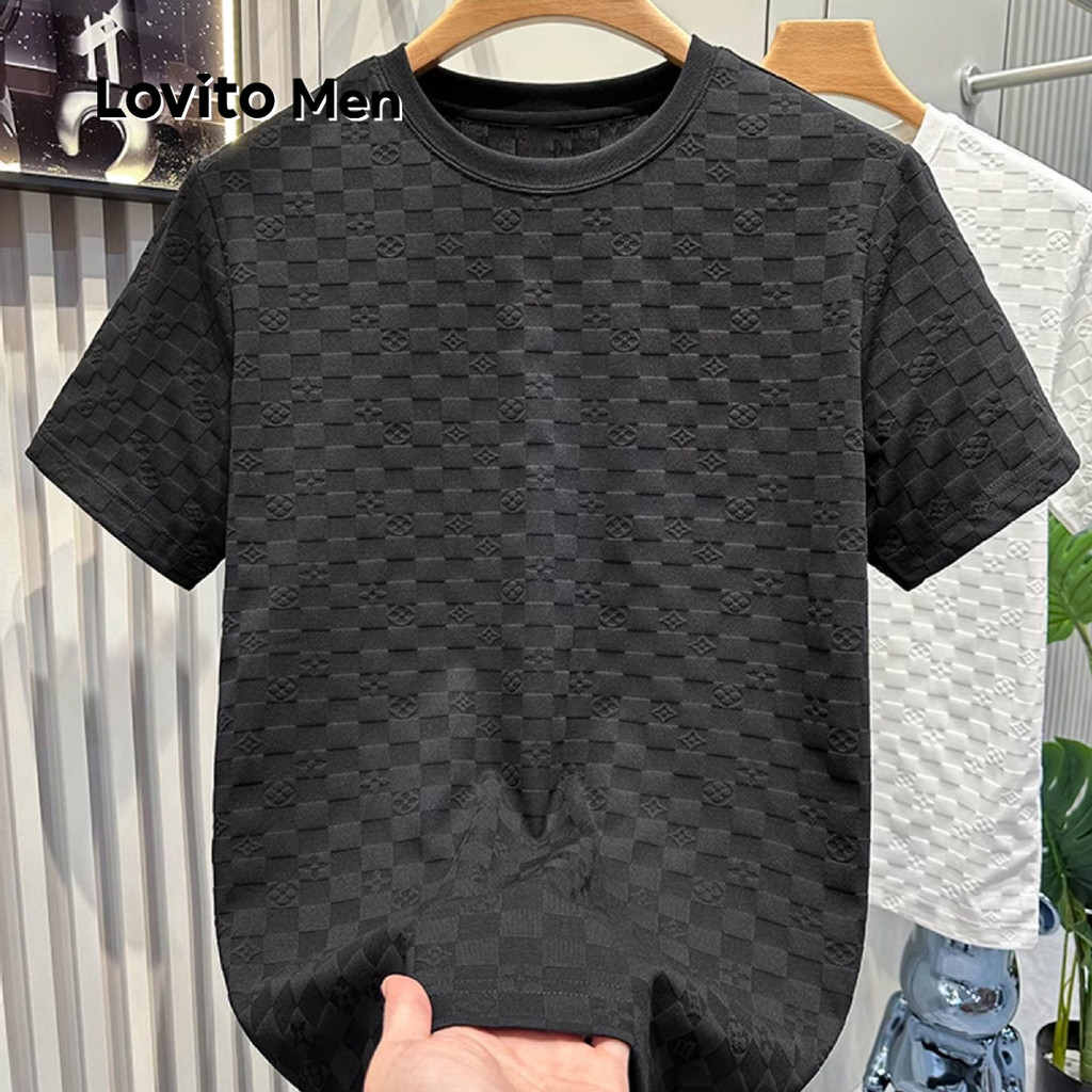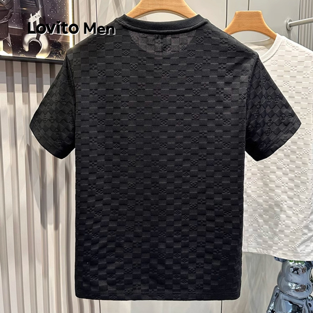 Lovito Men Camisa Casual de Jacquard Primavera/verão Camiseta Preta para Homens LNE122024