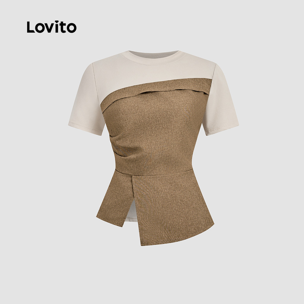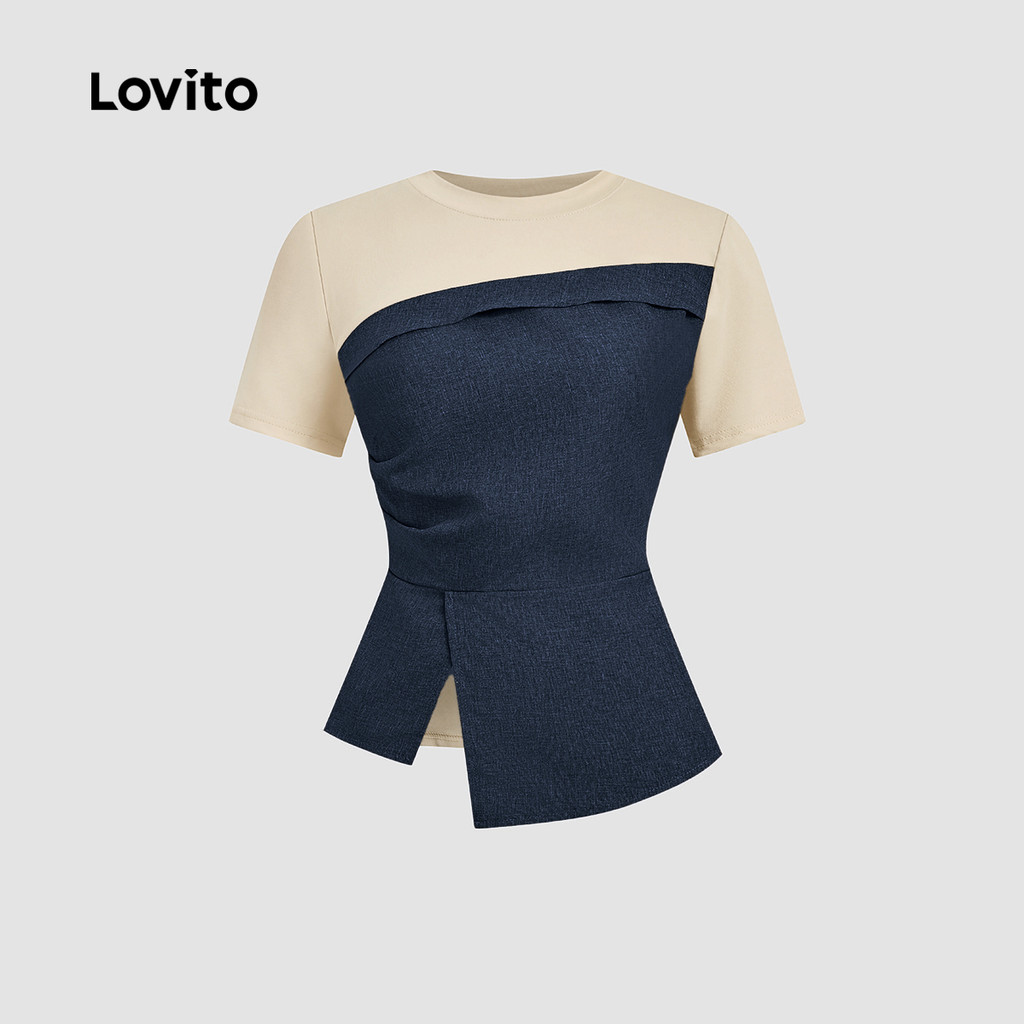 Lovito Blusa Elegante de Costura em Tecido Colorblock para Primavera/verão para Mulheres L170ED120