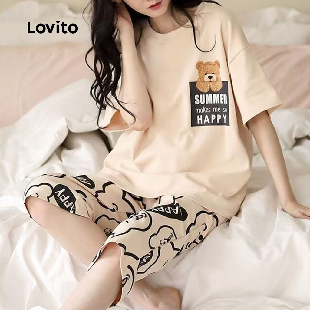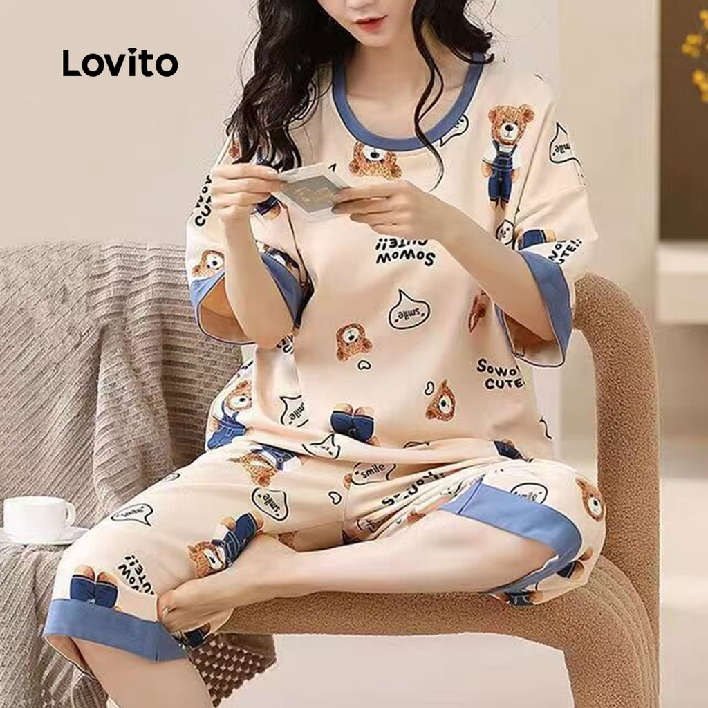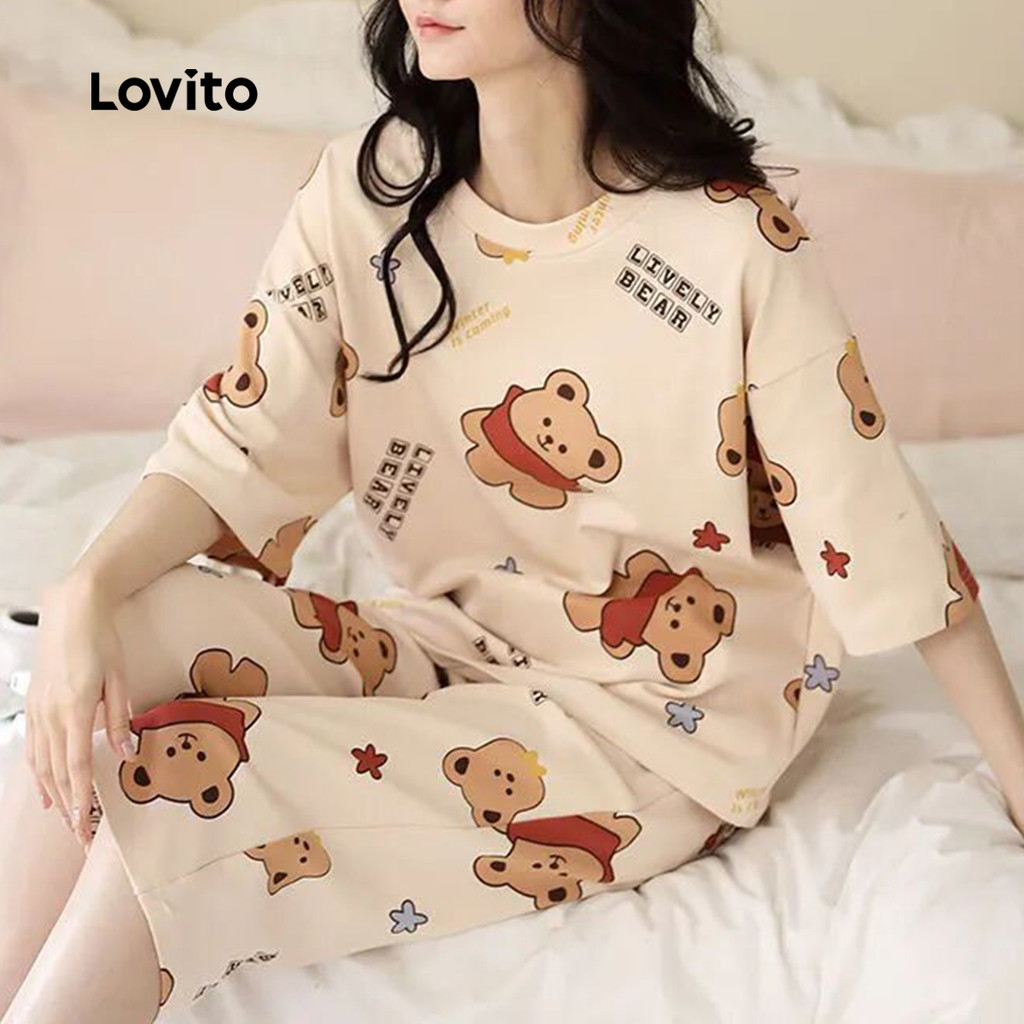 Lovito Conjunto Pijama Fofo 2 Peças Desenho Animado Primavera/Verão Mulheres LNE130065