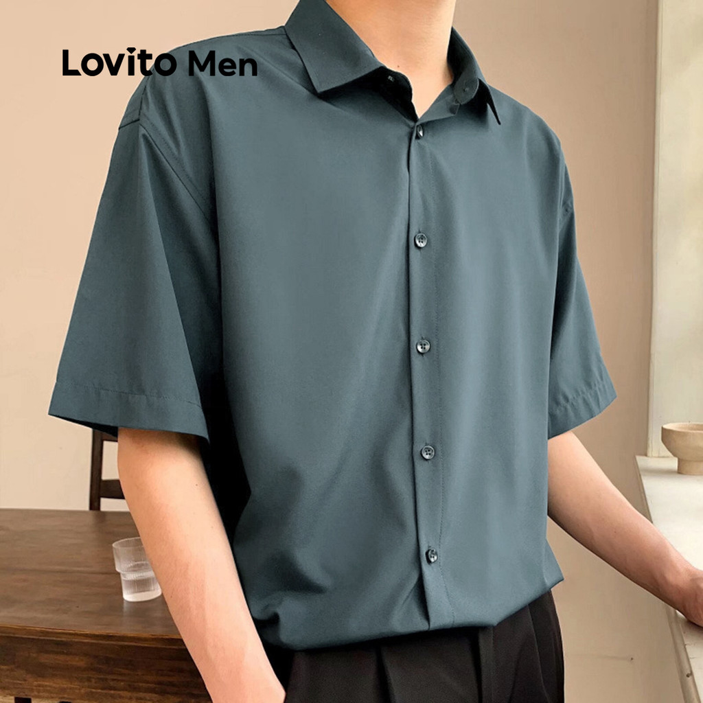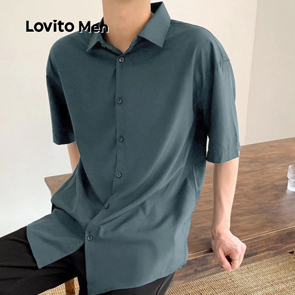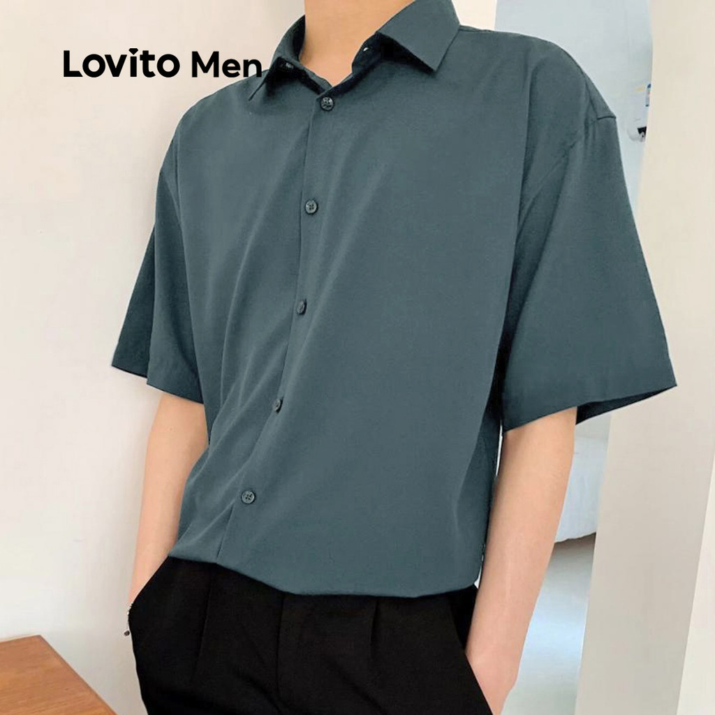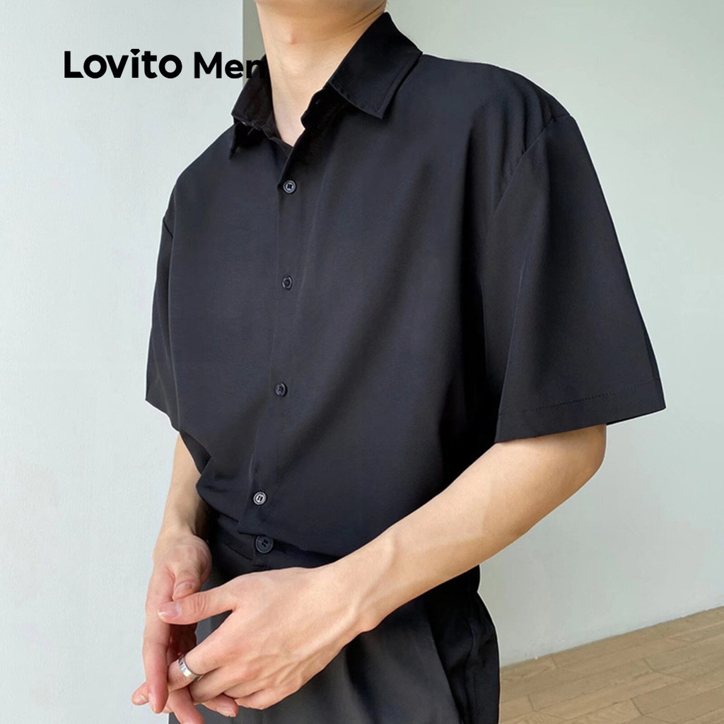Lovito Men Camisa Elegante para Deslocamento com Botões Na Frente Primavera/verão Preta para homens LNE122148