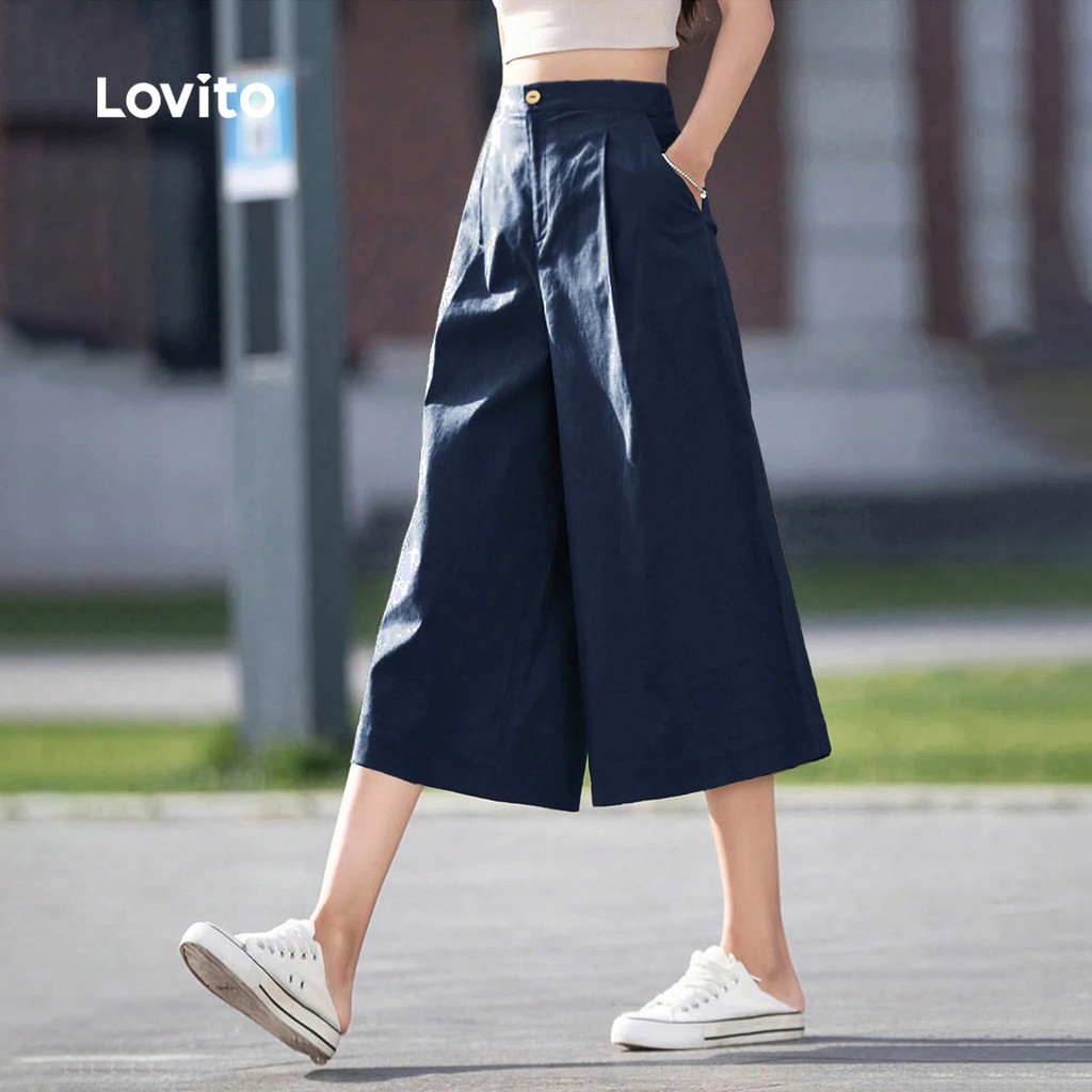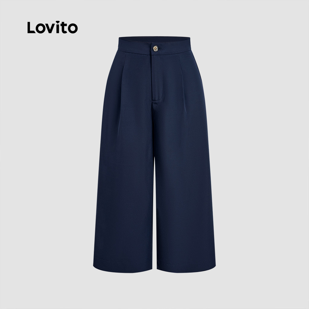 Lovito Calça Feminina Azul Marinho com Botão para Verão LBL31015