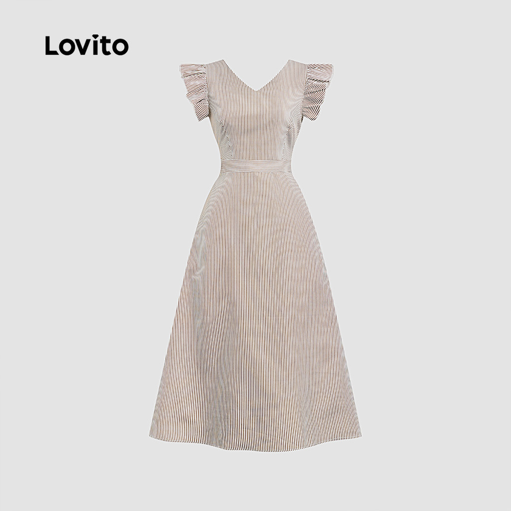 Lovito Vestido Casual com Recorte e Botão Primavera/verão Marrom para Mulheres L164LD098