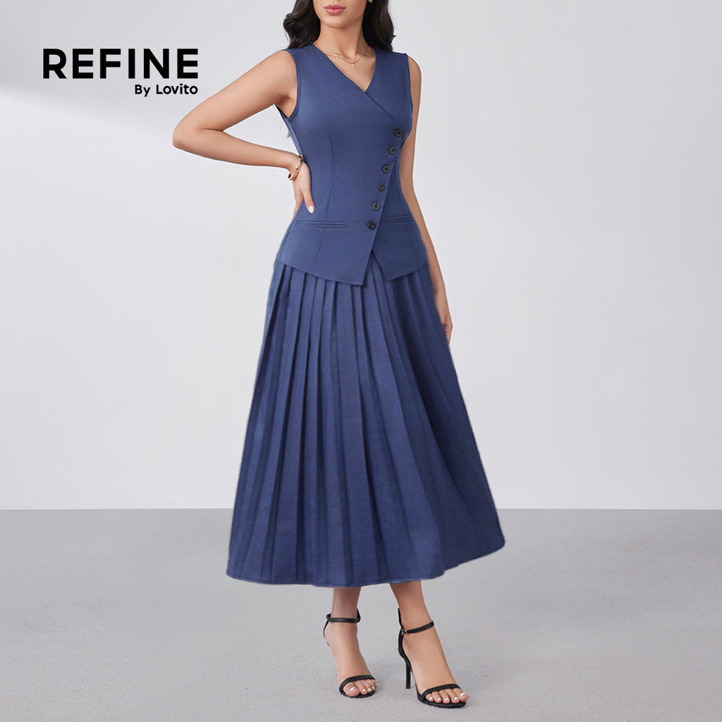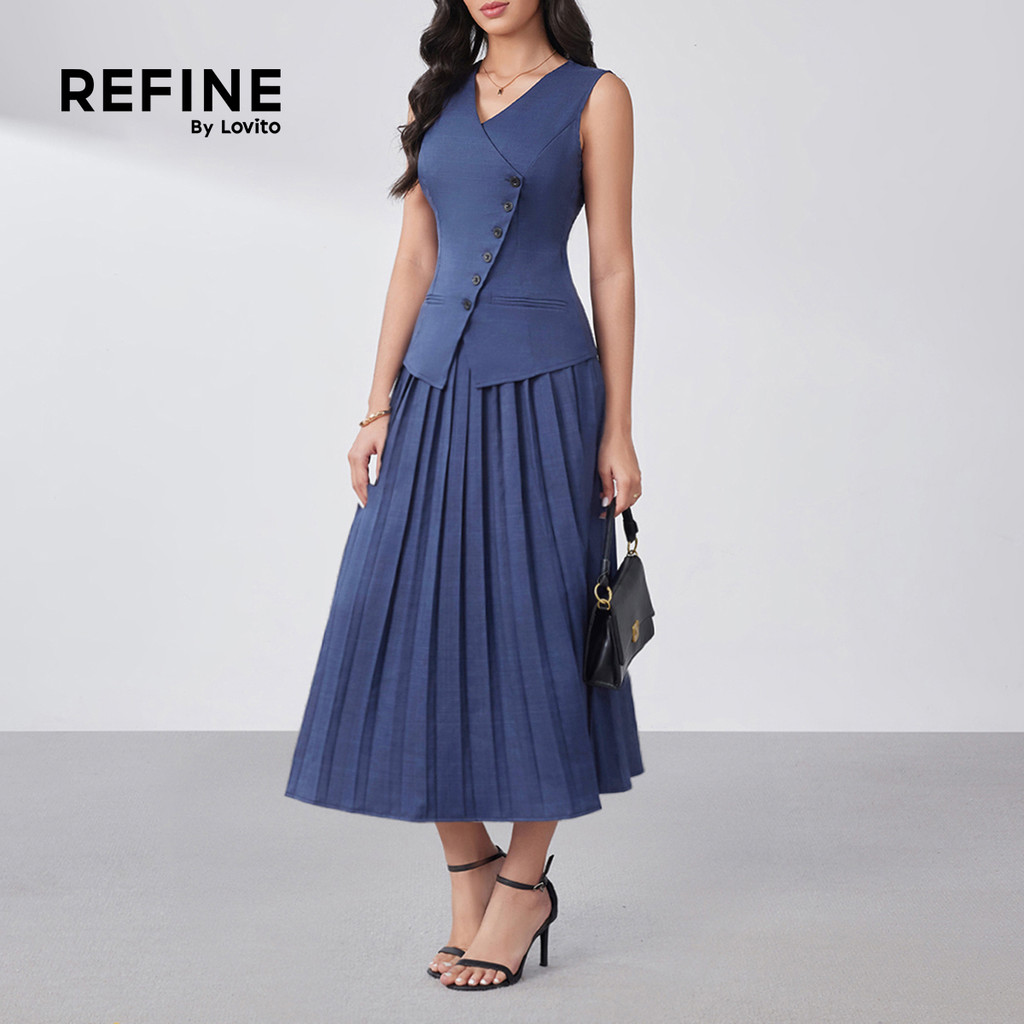 (Refine by Lovito) Elegantes tops o pantalones azul marino de primavera/verano para mujer LR32L038