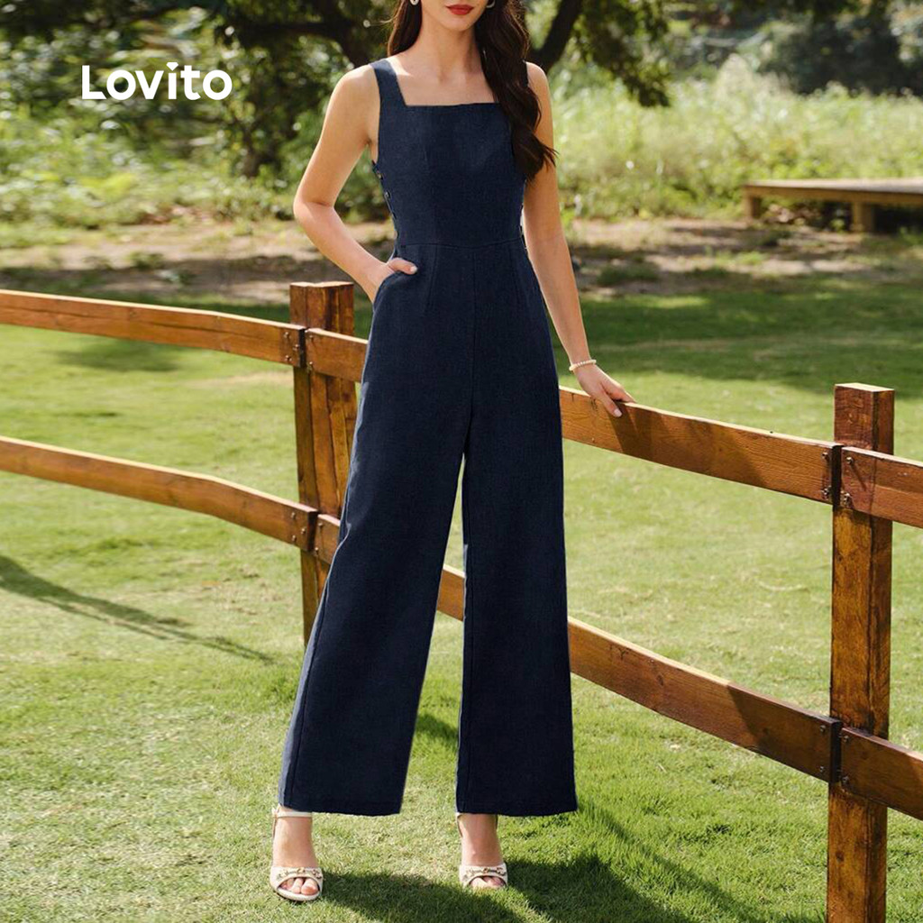 Lovito Macacão Casual com Botões e Design Estruturado para Primavera/Verão Azul-Marinho L155AD1555