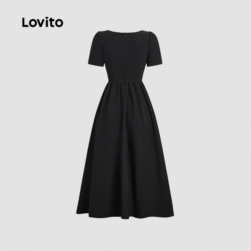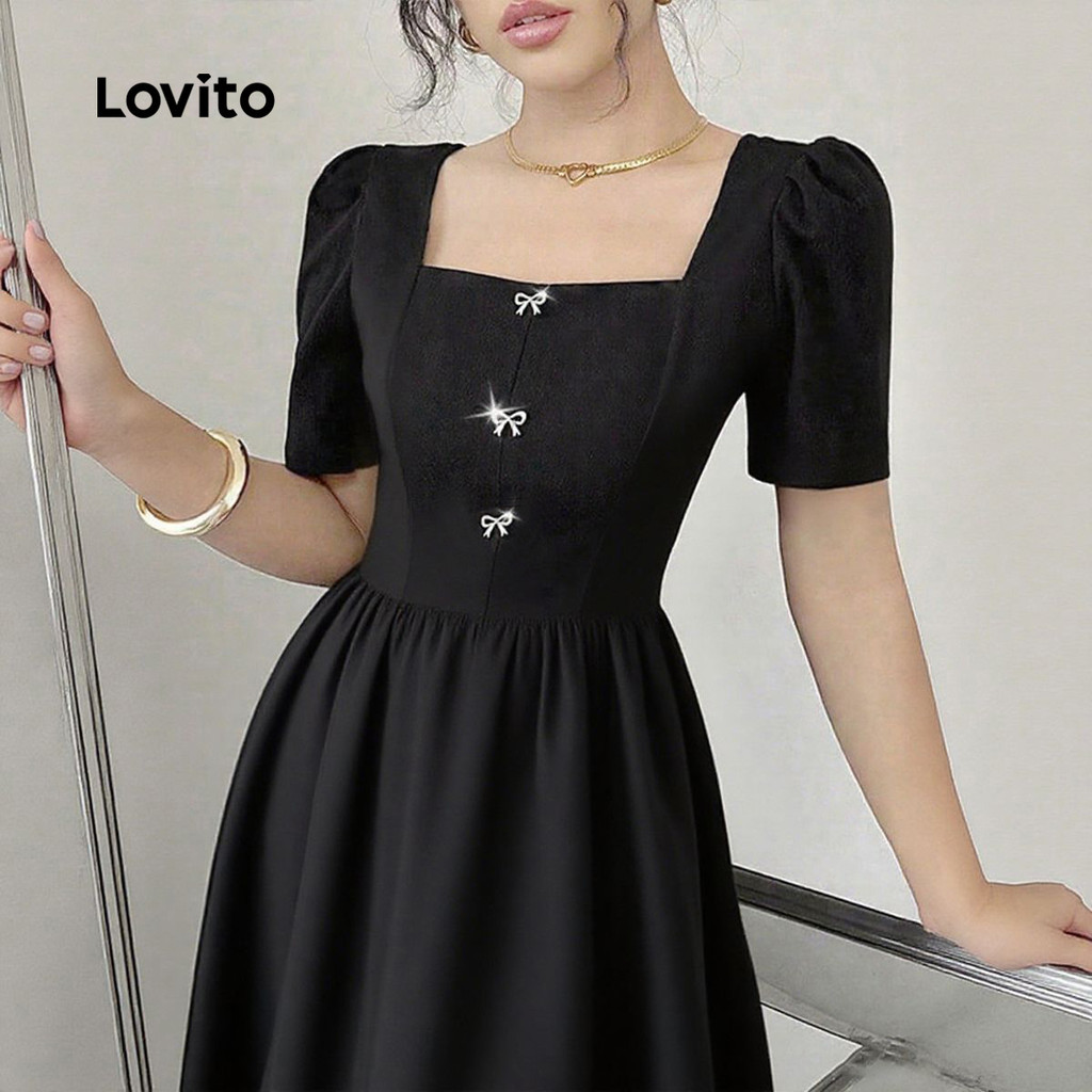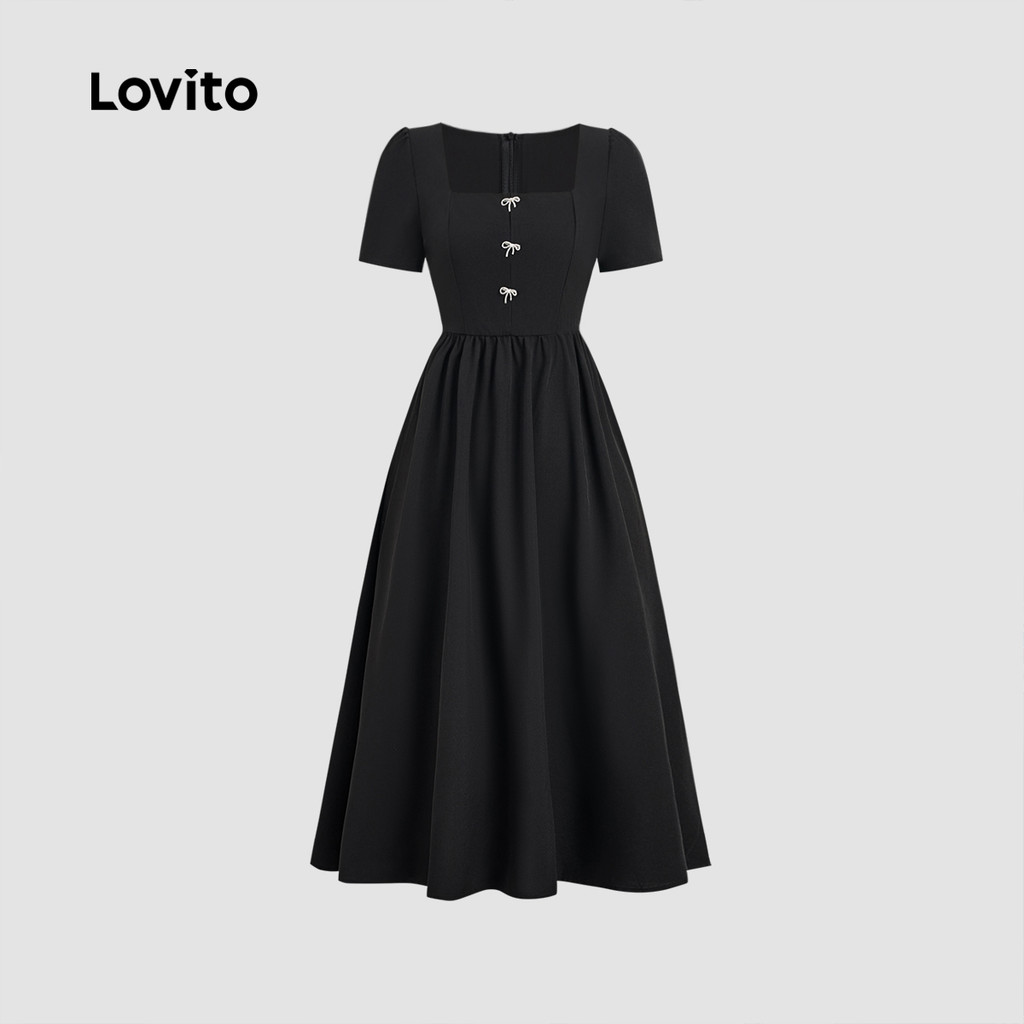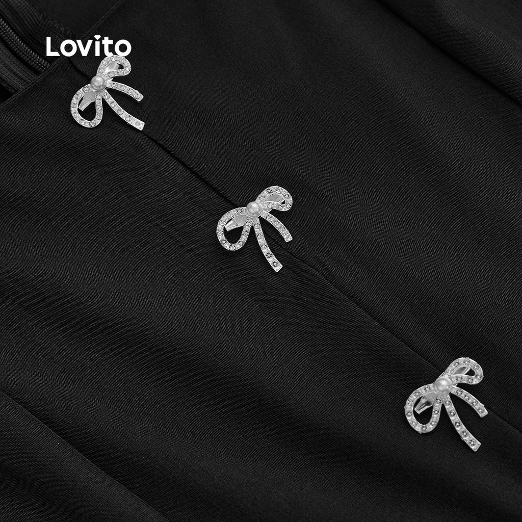 Lovito Vestido Elegante com Laço Primavera/verão Preto para mulheres L158AD130