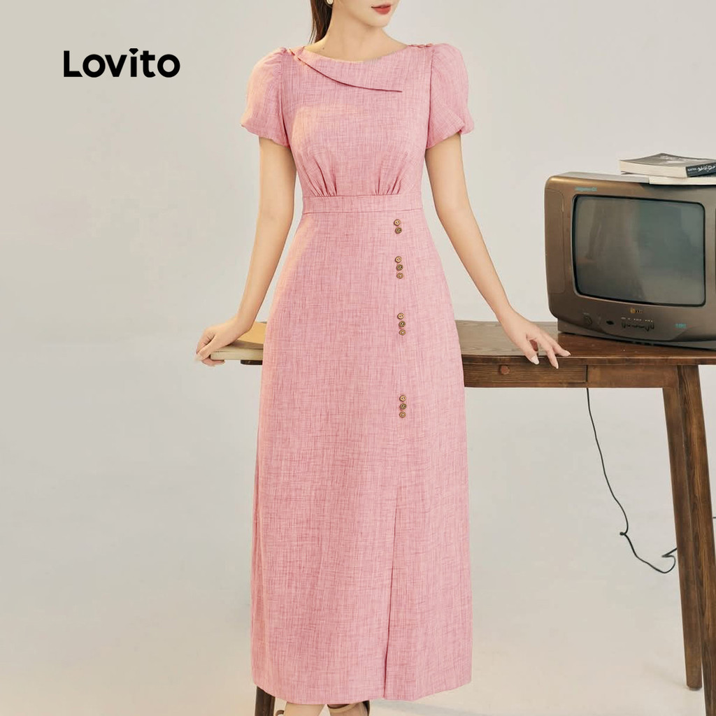 Lovito Vestido Casual Vestido Assimétrico com Botão Primavera/verão Rosa para Mulheres L165ED1474