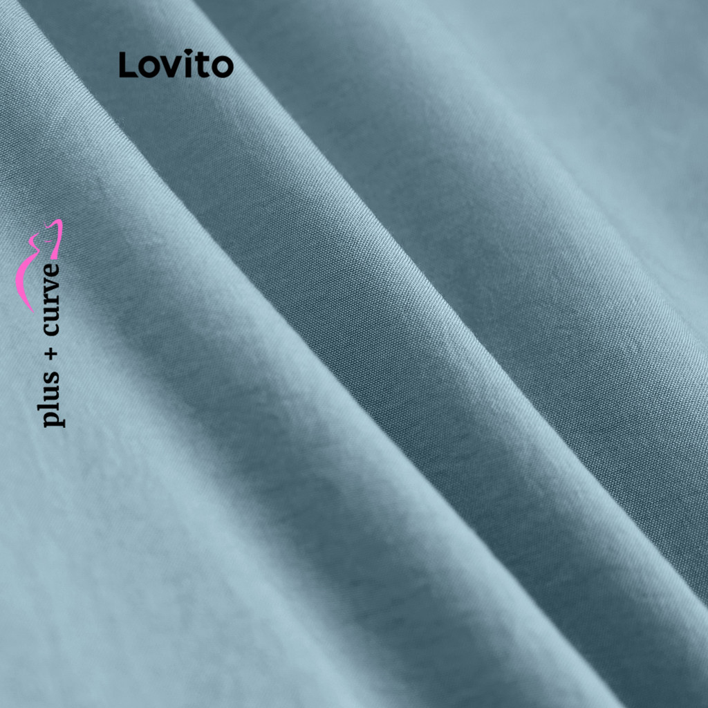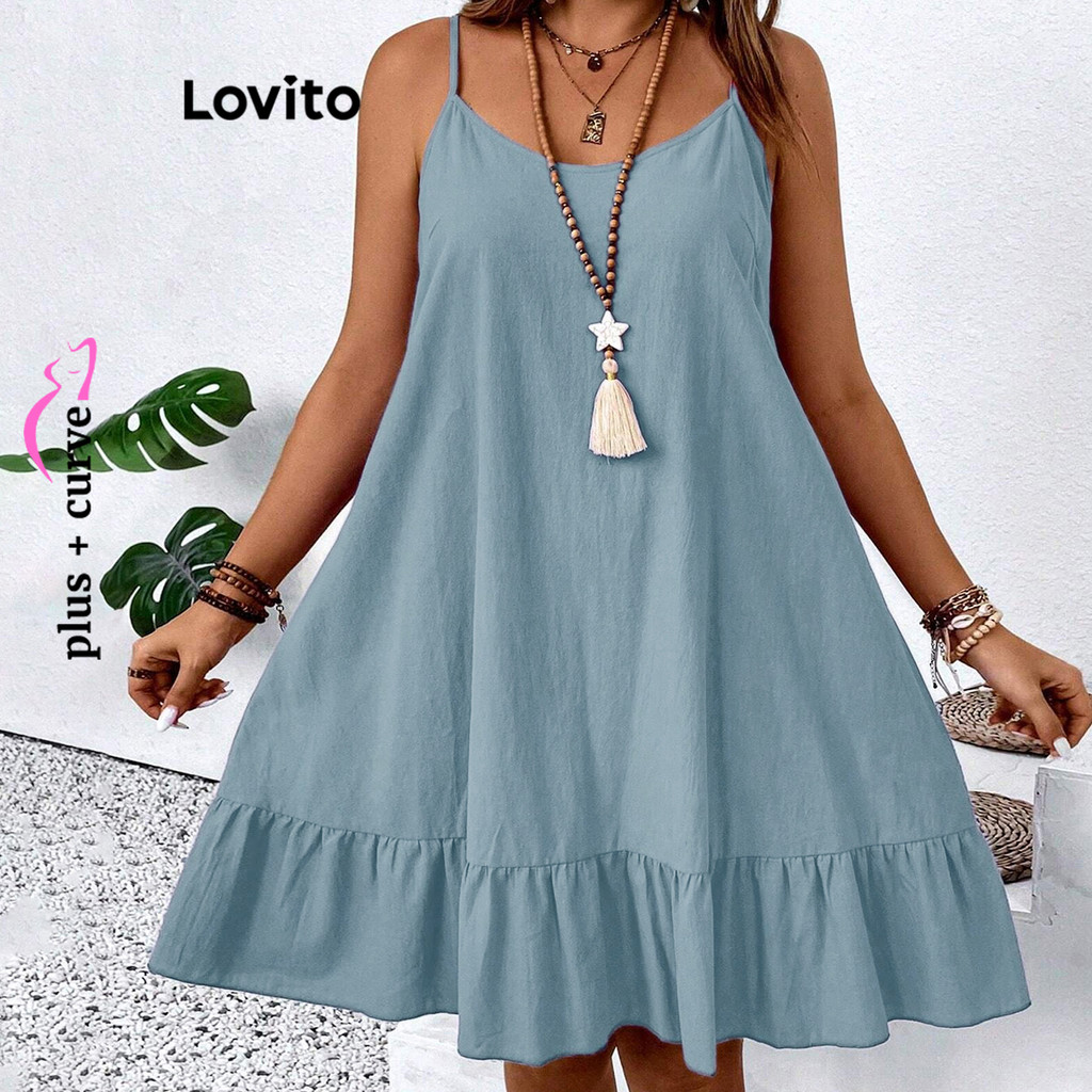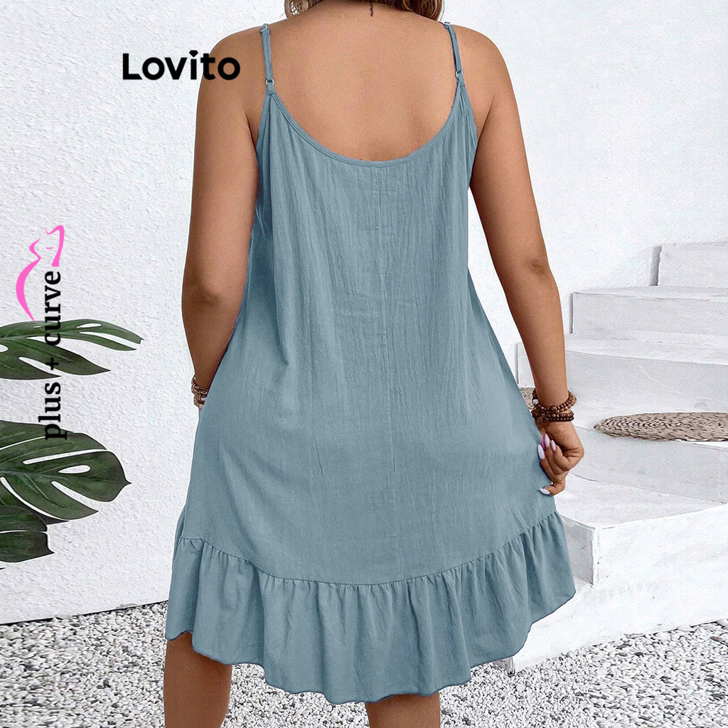 Lovito Vestido Curva Plus Size Casual Babados Lisos Feminino LBL18844