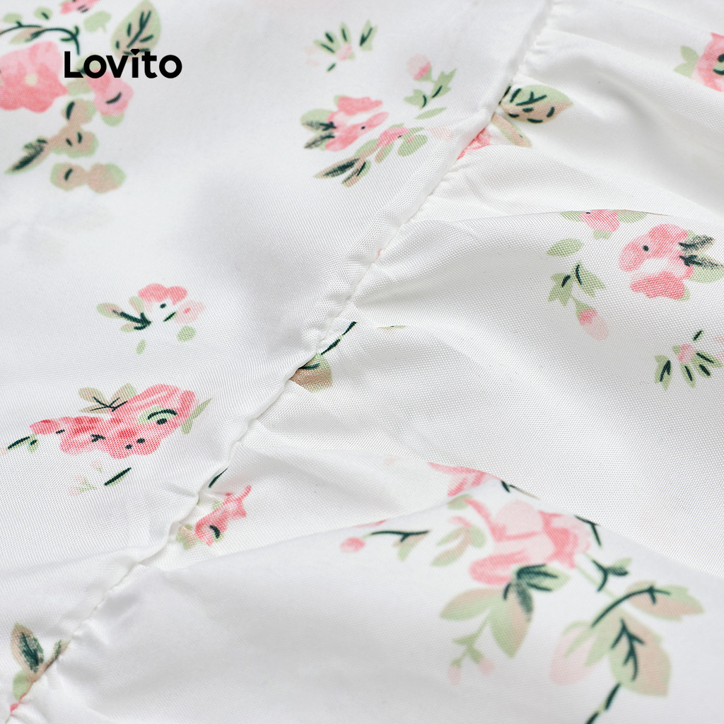 Lovito Vestido Feminino Casual Floral Em Renda Com Babados E Bainha Plissada Verão/Primavera L120LD1273