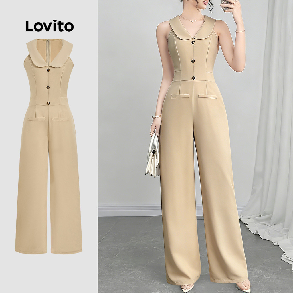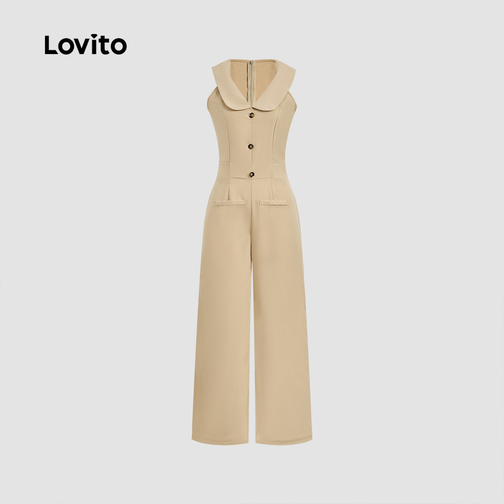 Lovito Macacão Elegante com Simples para Primavera/verão Cor Cáqui para mulheres. L178ED1273