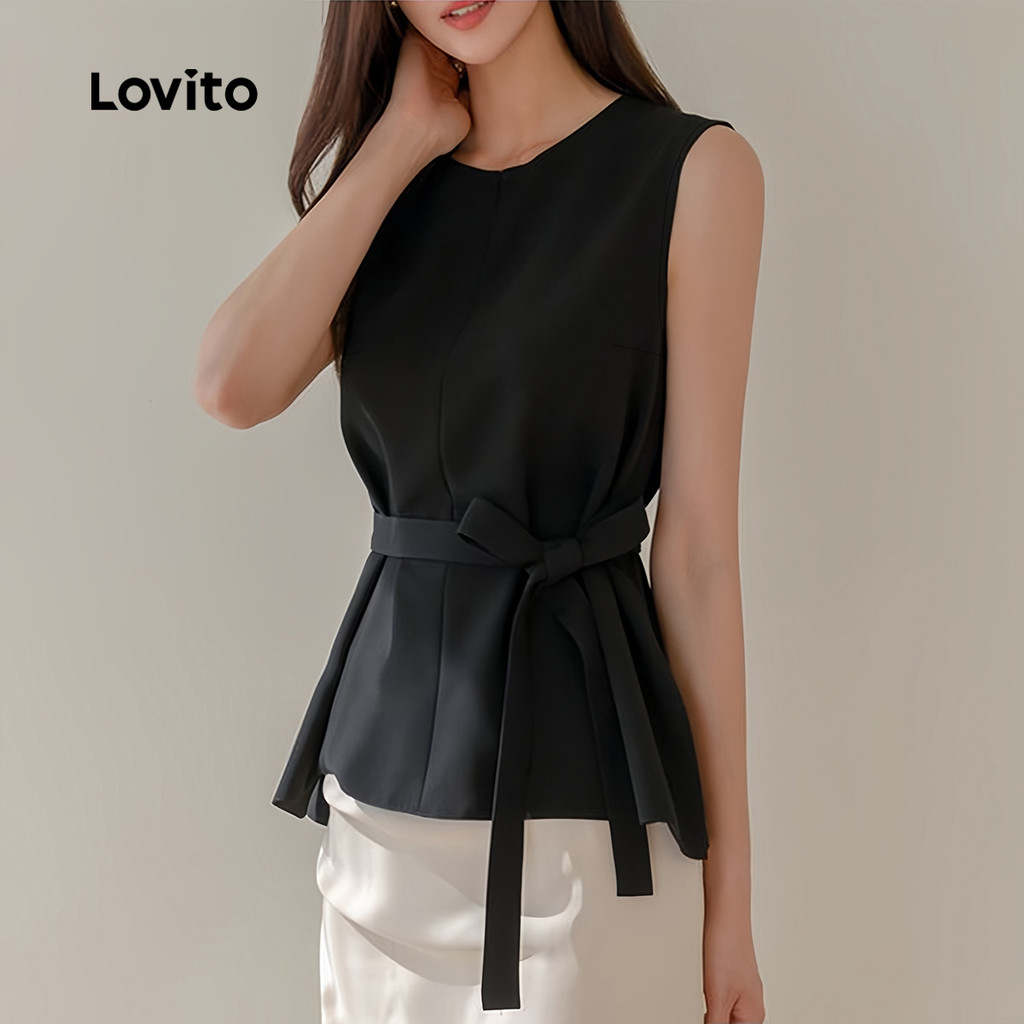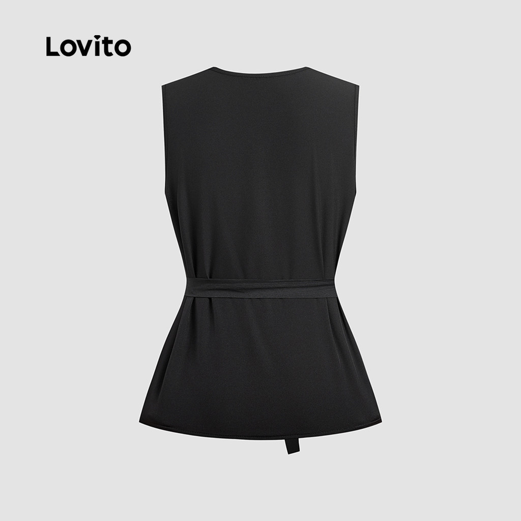Lovito Blusa Elegante com Amarração Na Frente para Primavera/verão Blusa Preta para Mulheres LBL29373