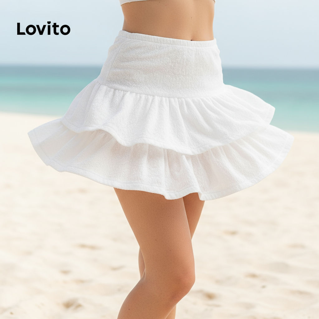 Lovito Saia Feminina Plissada Em Camadas Lisas e Fofas L106AD530\6