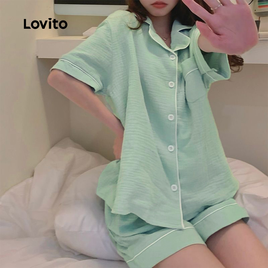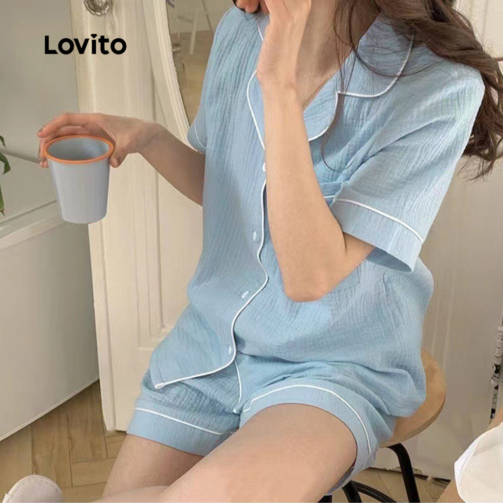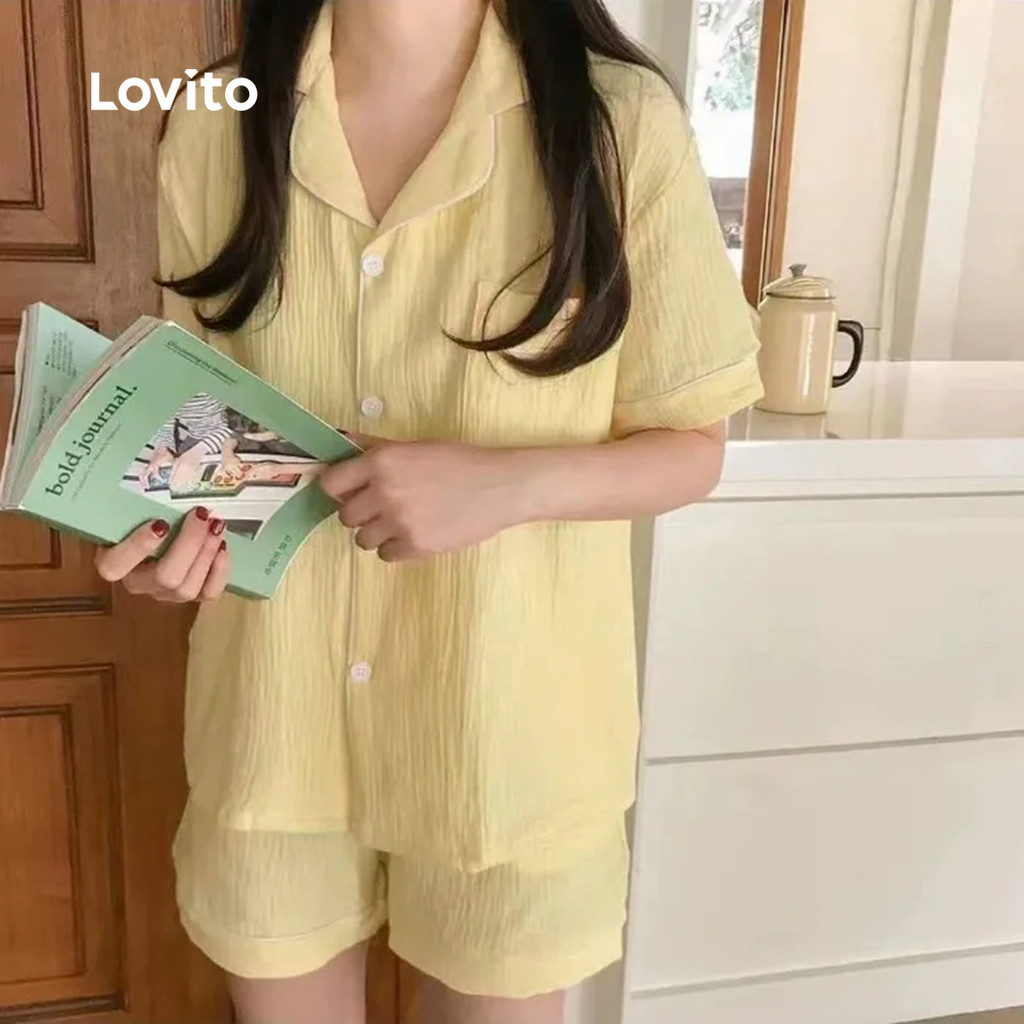 Lovito Pijamas Elegantes Kit com 2 Estampas Combinadas Pijama Rosa Primavera Verão LNE117147