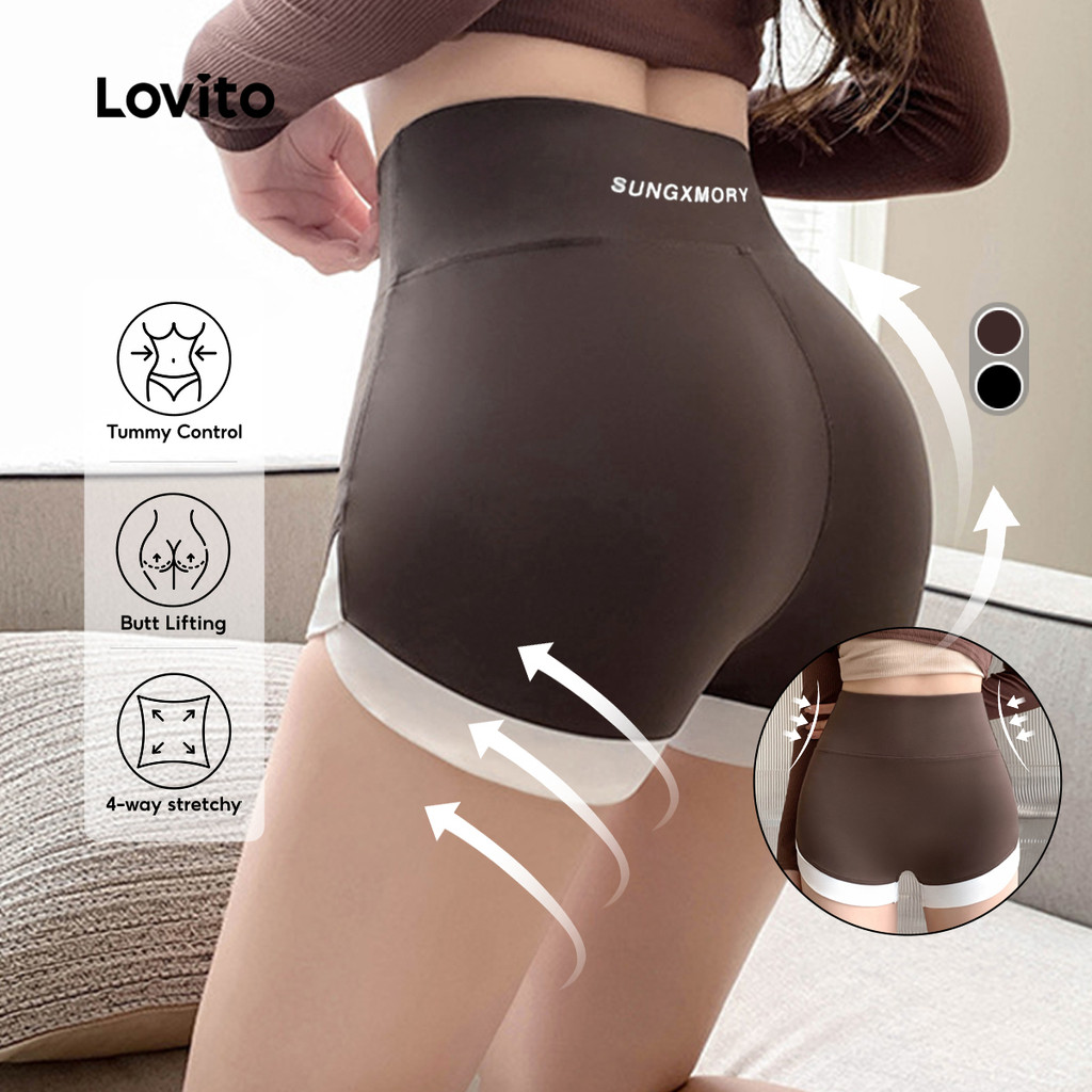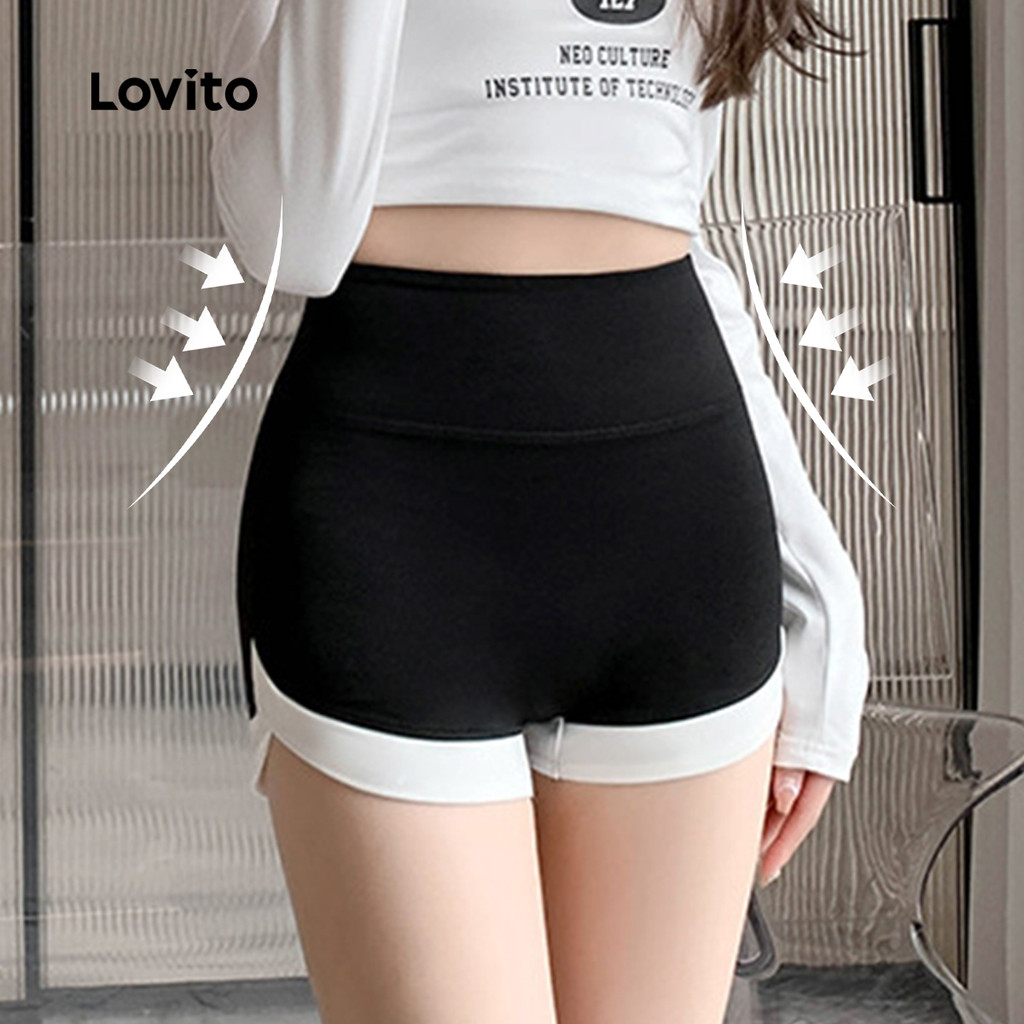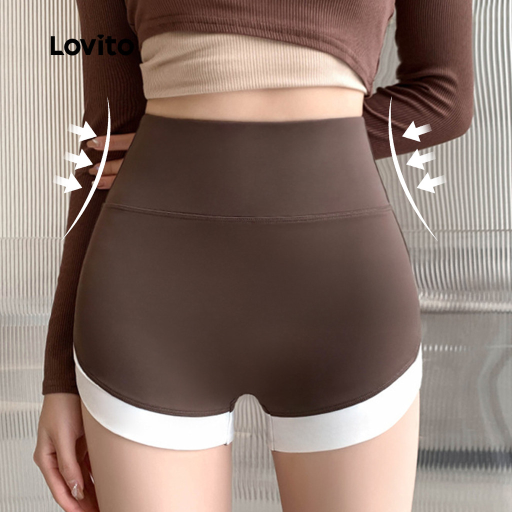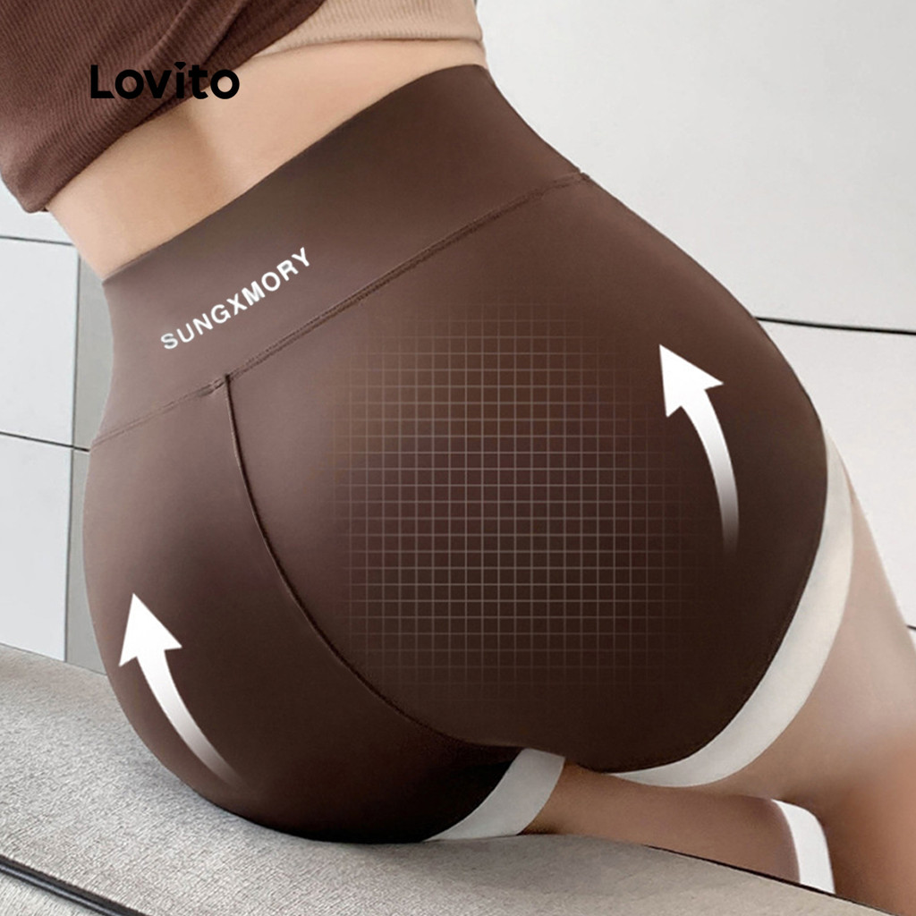 Lovito Shorts Esportivos com Controle de Barriga Levantamento de Bumbum Elástico em 4 direções LNA129041