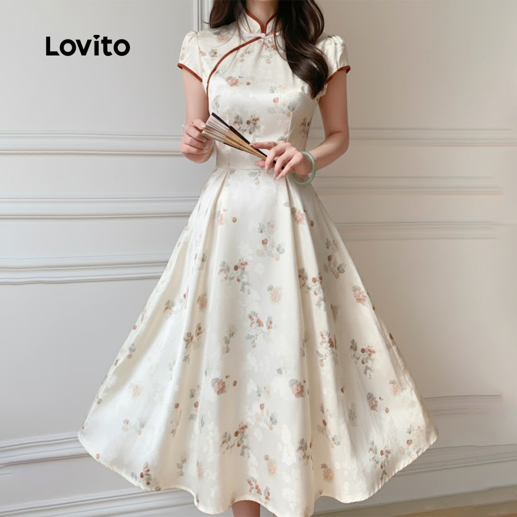Lovito Vestido Fofo De Festa Com Botões Coloridos Para Primavera/verão LK2ED198