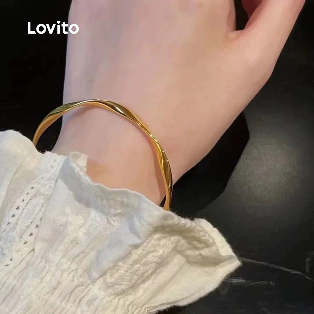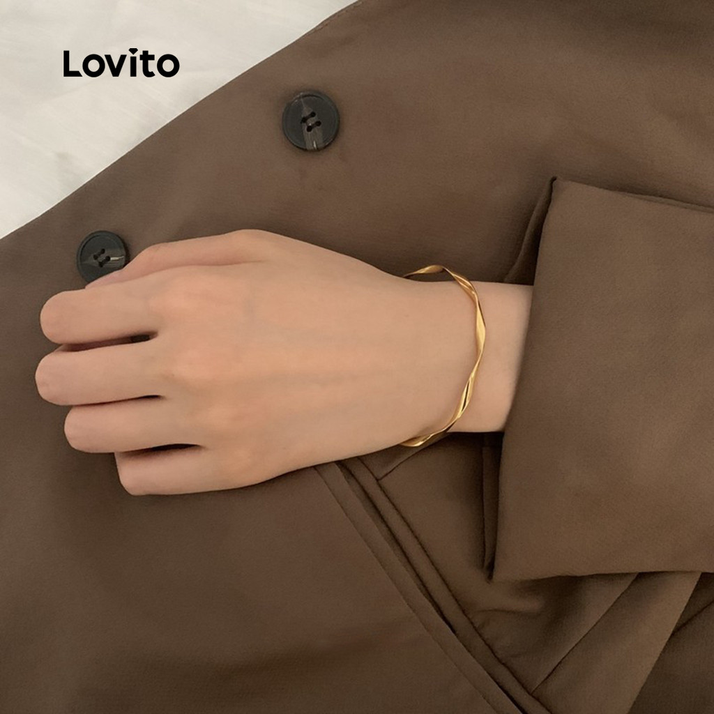 Lovito Pulseira de Metal com Textura Casual LFA111191