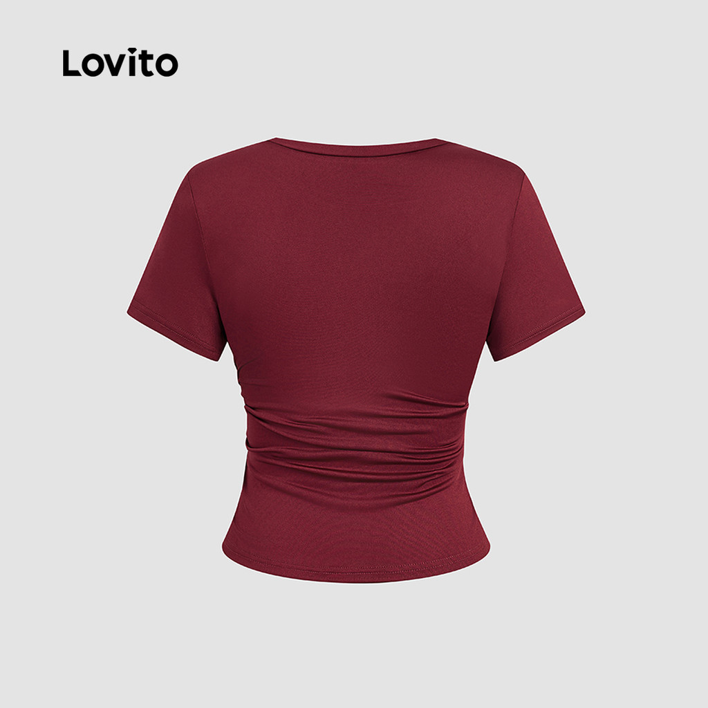 Lovito Camisa Casual Primavera/verão Claret para Mulheres L157LD354