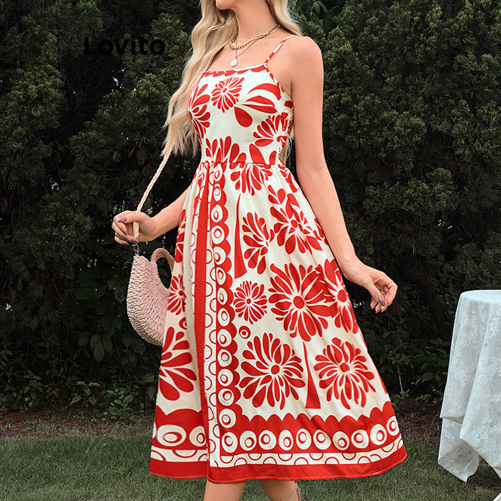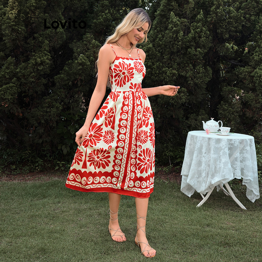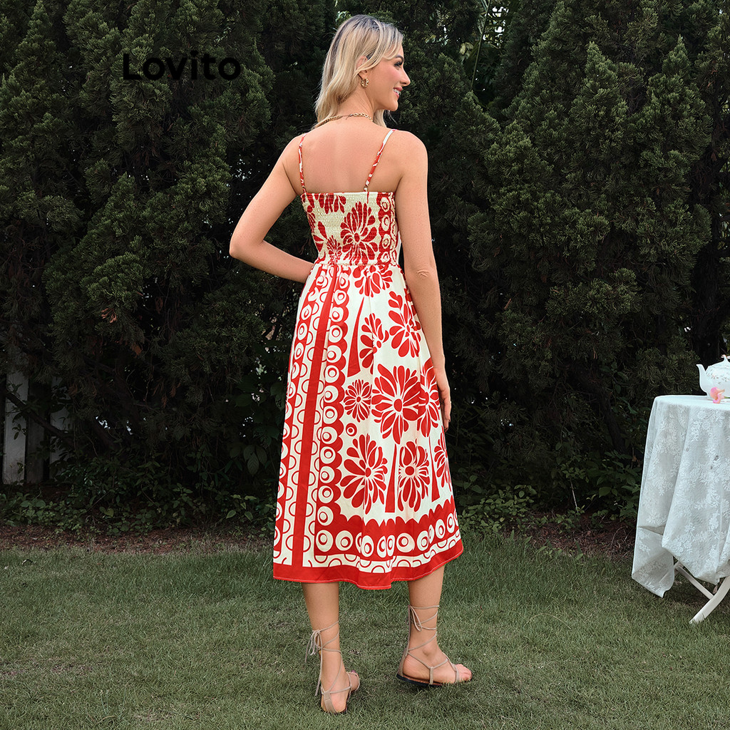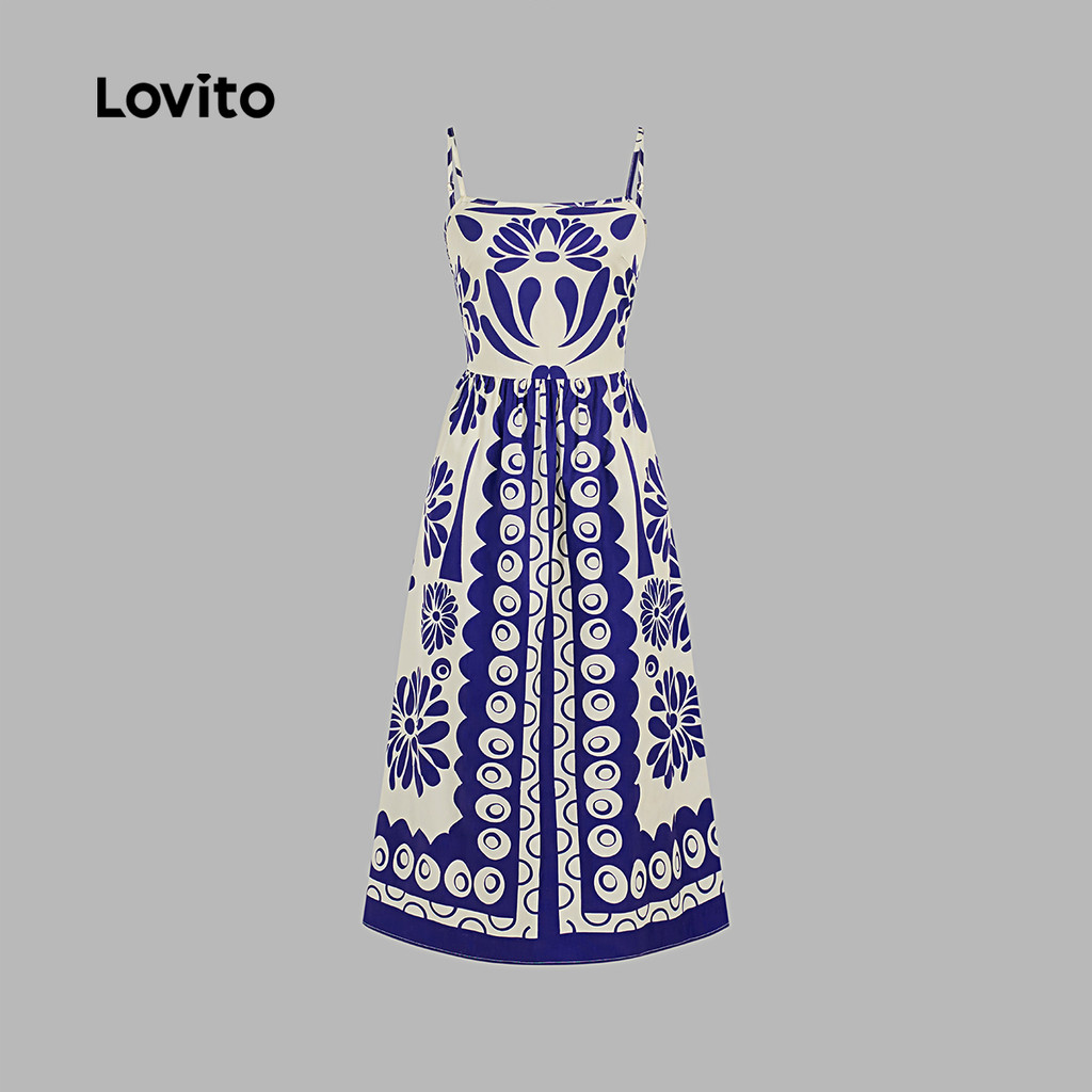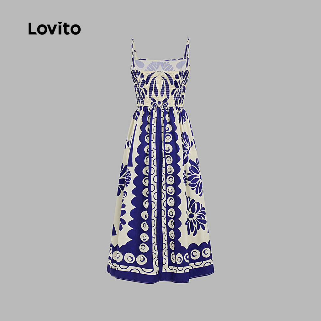 Lovito Refine Vestido Boho Com Estampa Tribal E Vestido Franzido Para Mulheres LBL17603\3