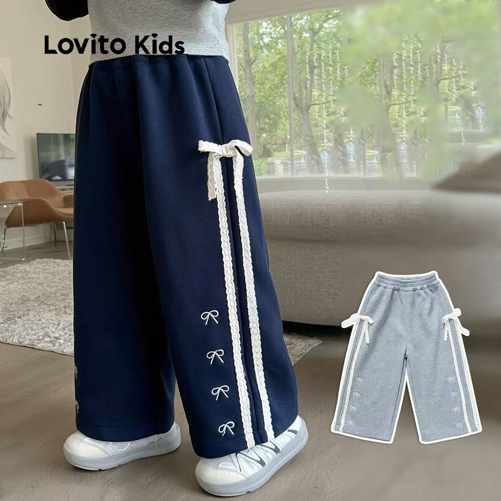 Lovito Kids Calças Fofas com Laço Na Cintura Primavera/verão Calças Cinza para menina LNL123072