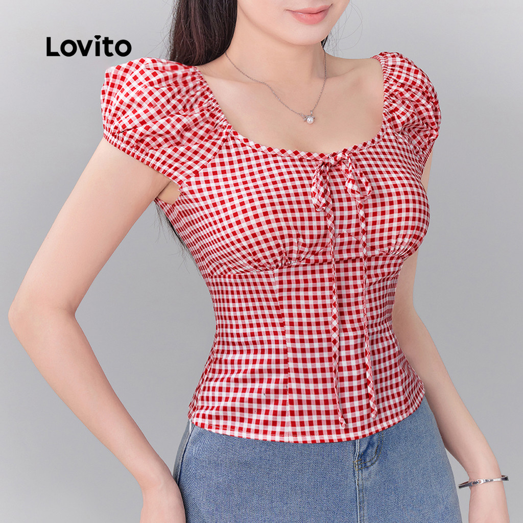 Estilo retrô, xadrez vermelho e branco, camisa sem alças versátil para um ombro, uso duplo - BLB151TD077