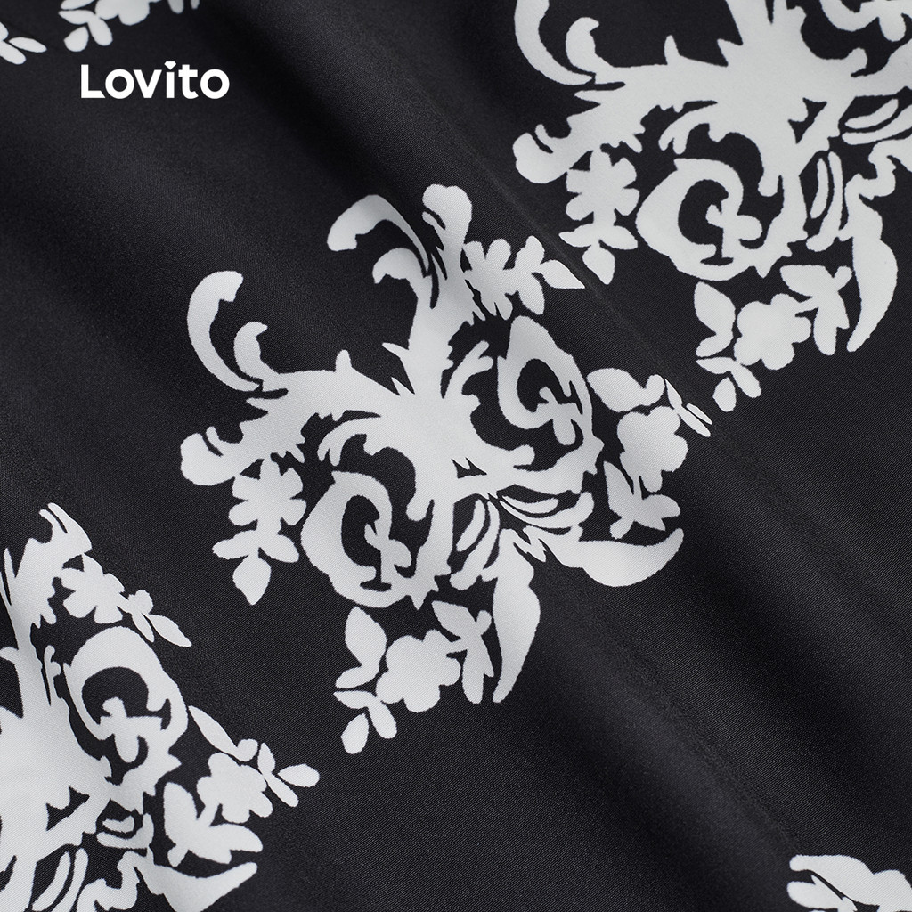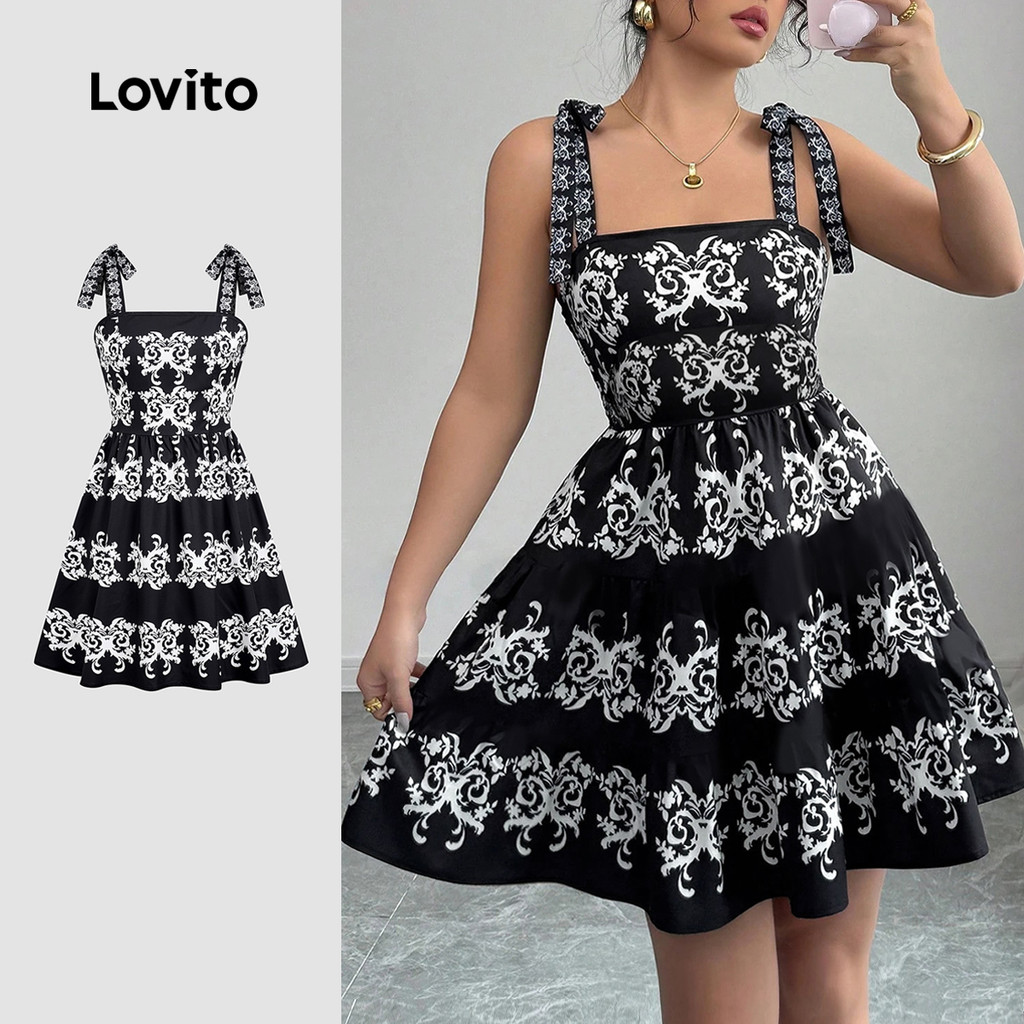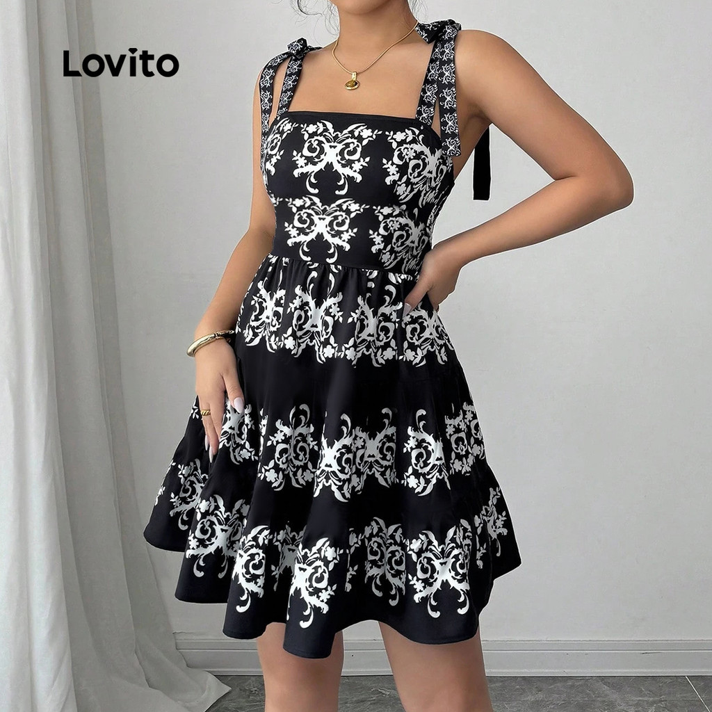 Lovito Vestido Boho com Renda para Mulheres Na Primavera/verão preto LBL31121