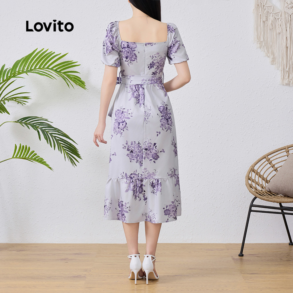 Lovito Vestido Boho Feminino Floral Primavera Verão Cinto Babados Bainha L131LD1234