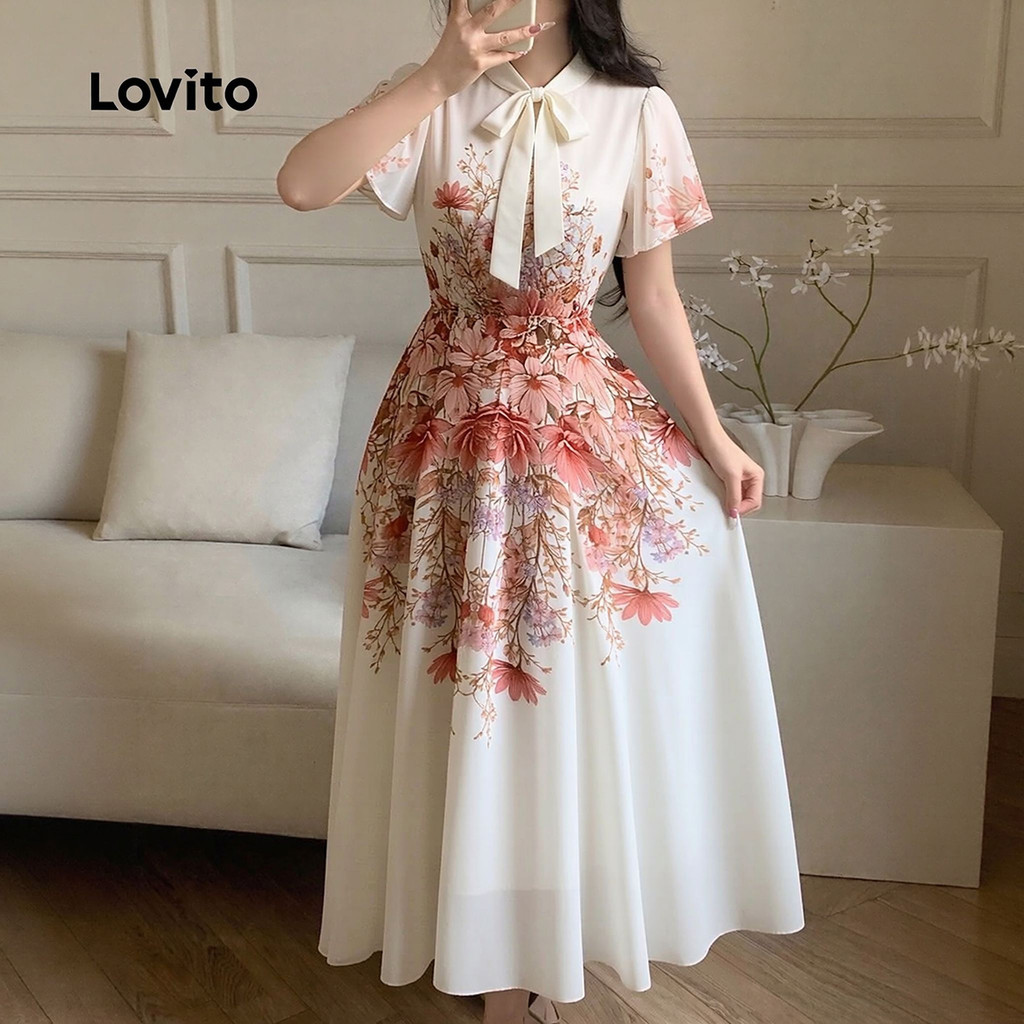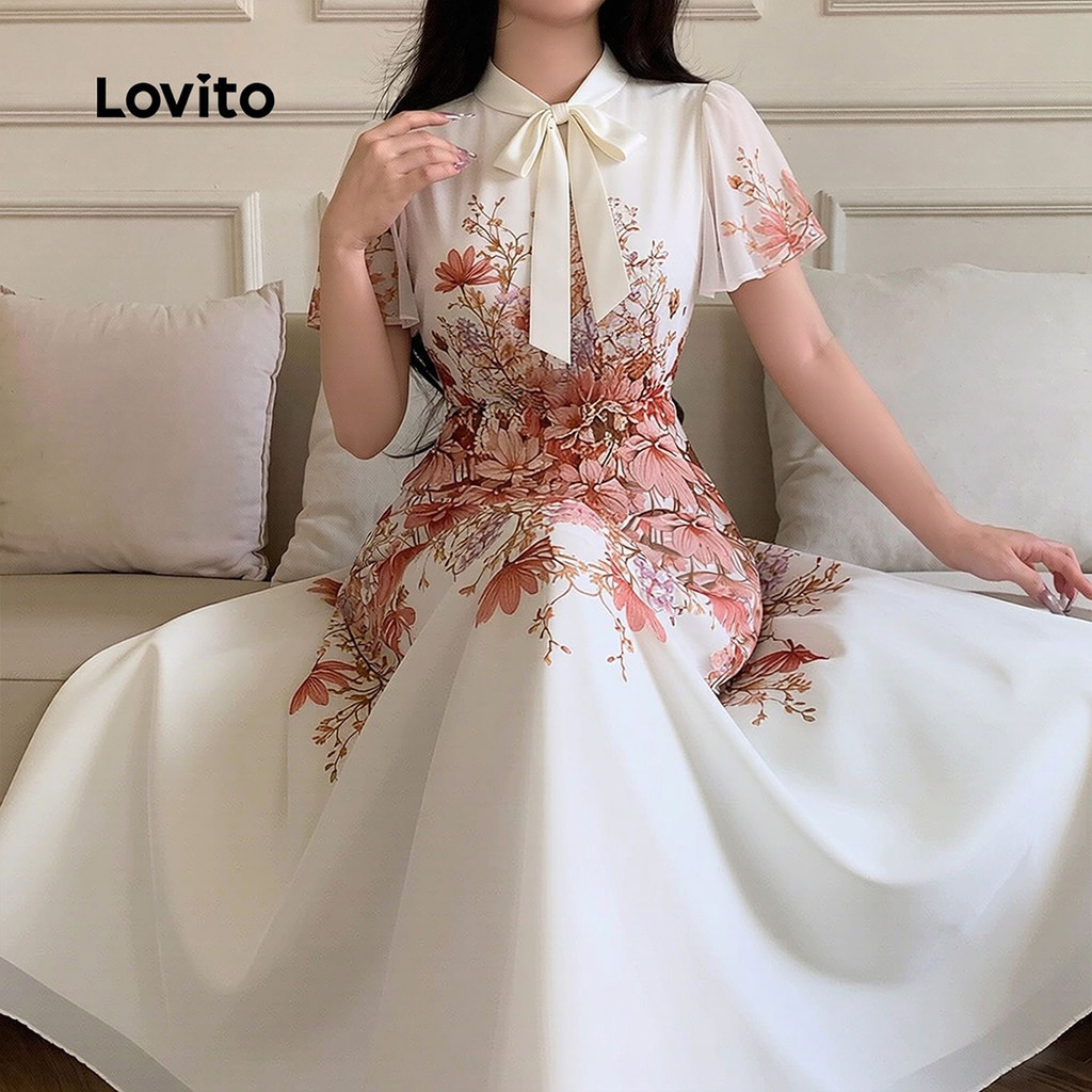 Lovito Vestido elegante com cadarço vestido primavera/verão para mulheres LK3LD408