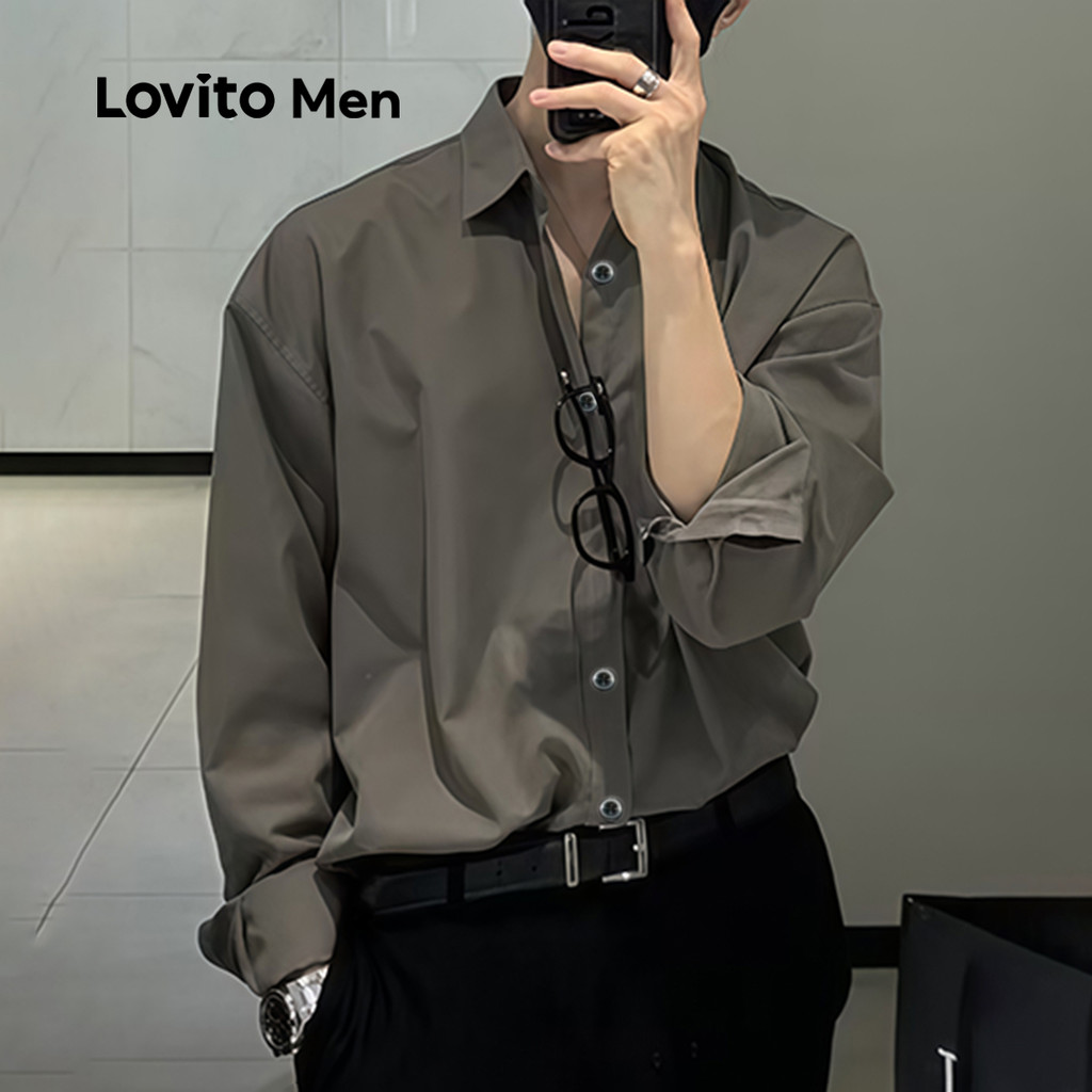 Lovito Men Camisa Casual de Botão para Todas As Estações Cinza para homens LNE122044