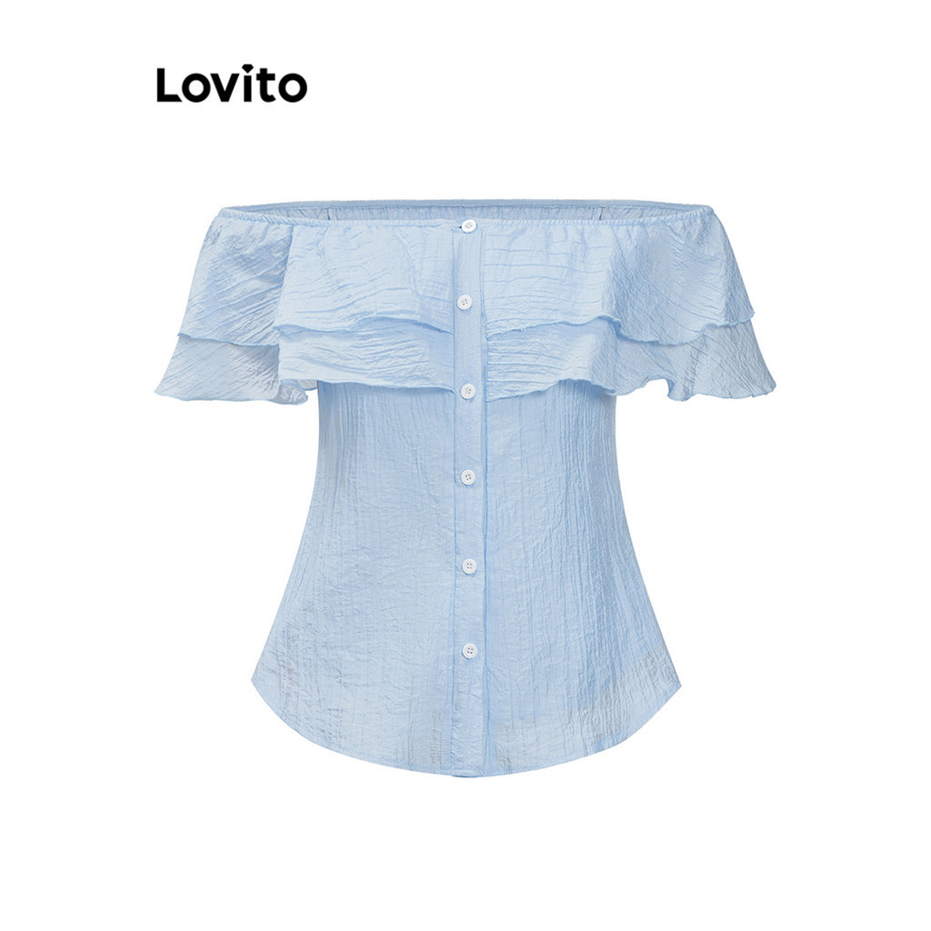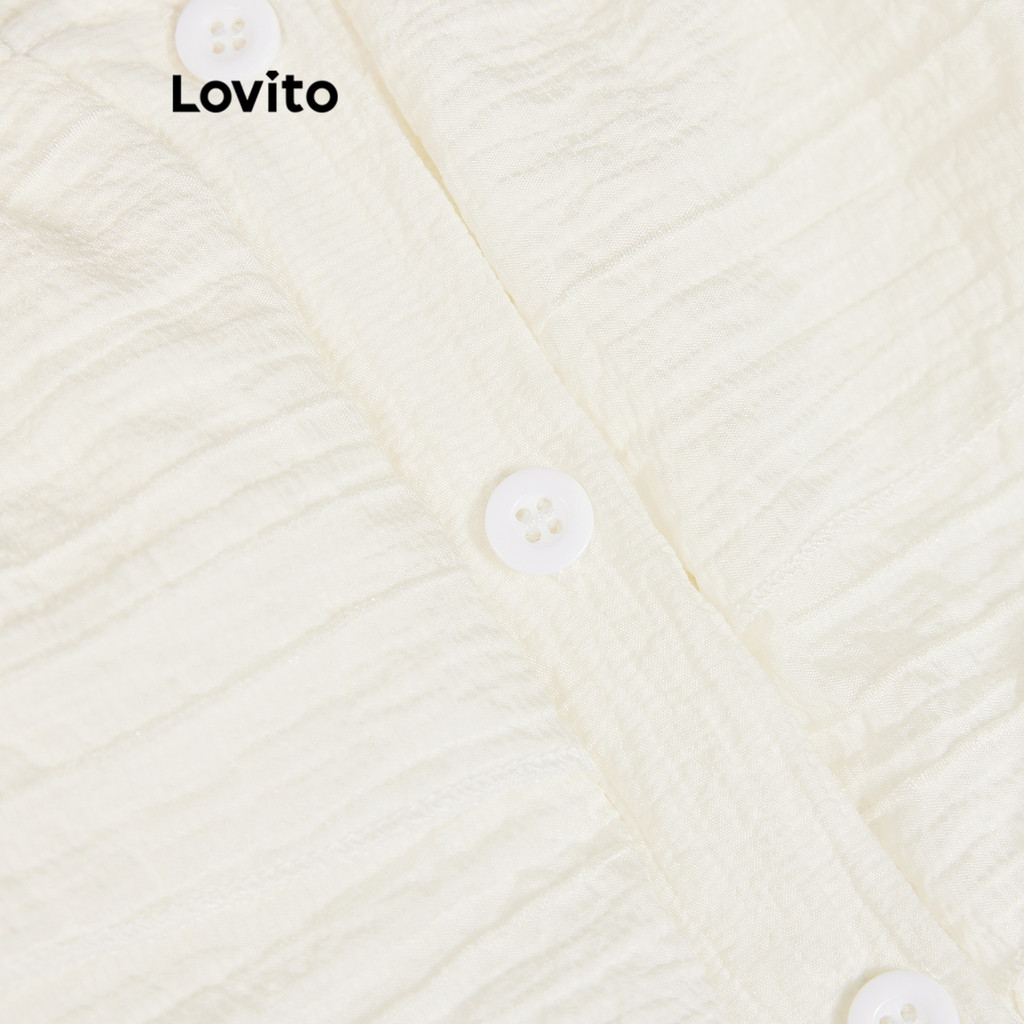 Blusa Feminina Lovito Casual Texturizada com Babado e Botão para Primavera Verão L79AD128