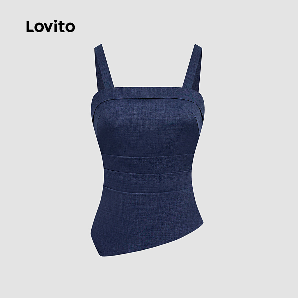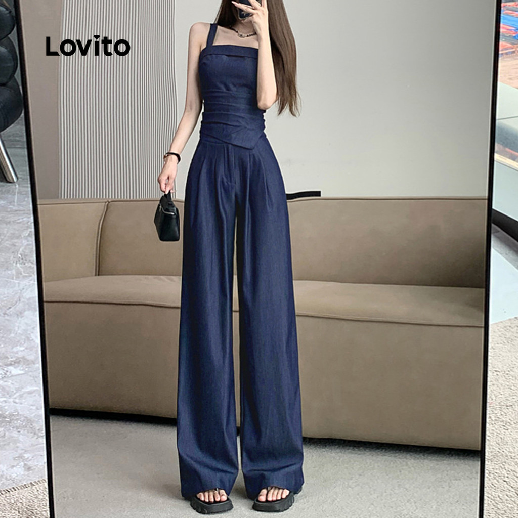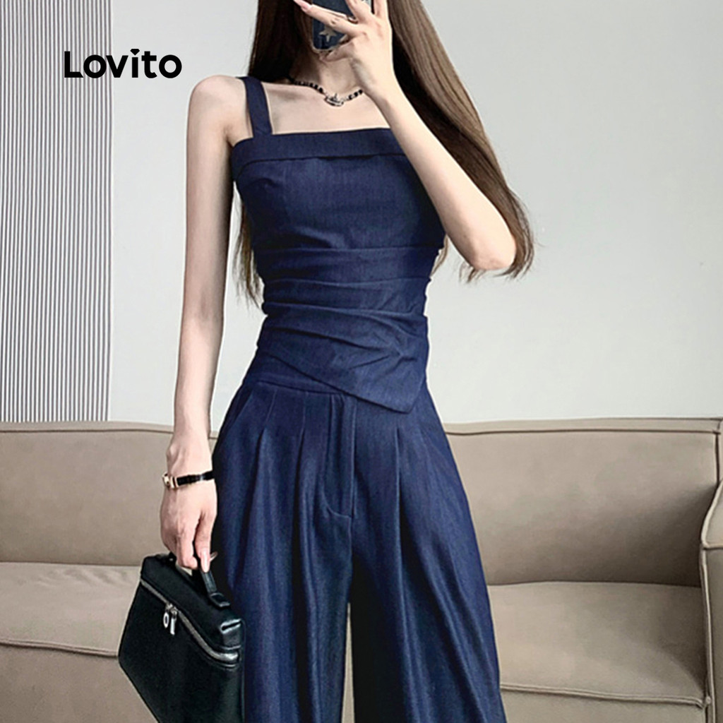 Lovito Tops ou Bottoms Casuais Plissados Primavera/verão Terno Azul Escuro L166AD1002