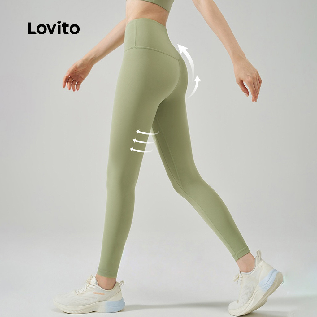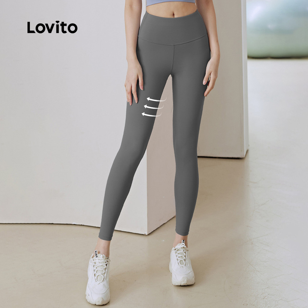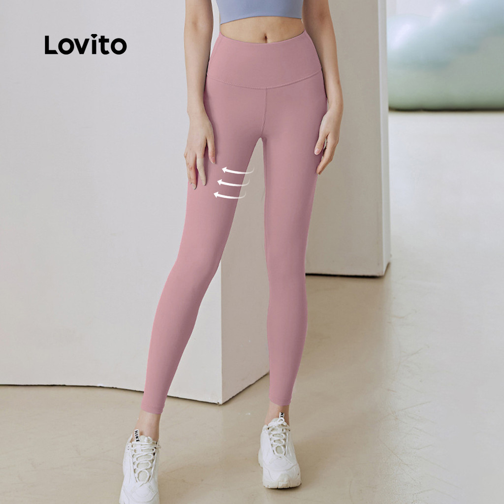 Lovito Leggings Esportivas Controle de Barriga Levantamento de Bumbum Elástico em Quatro Direções rosa LNA133049