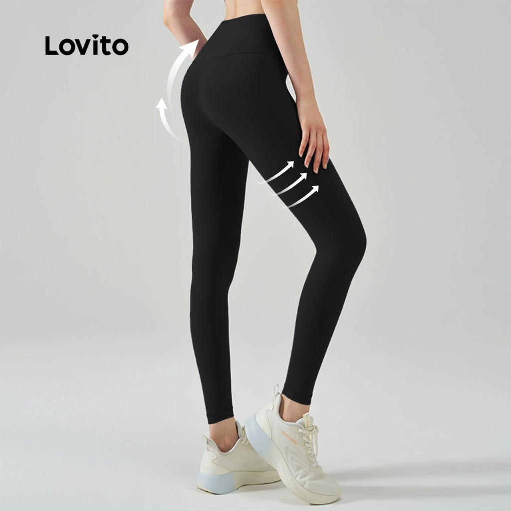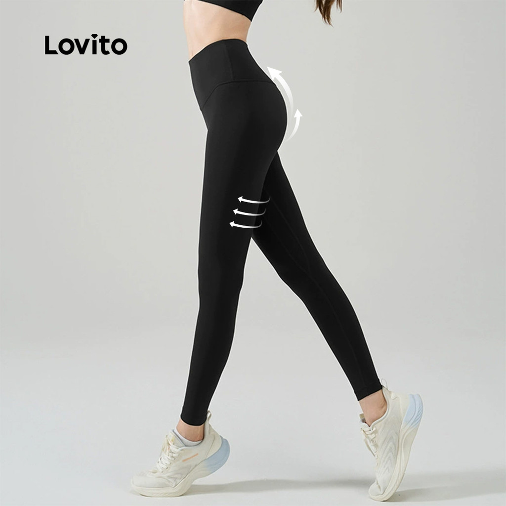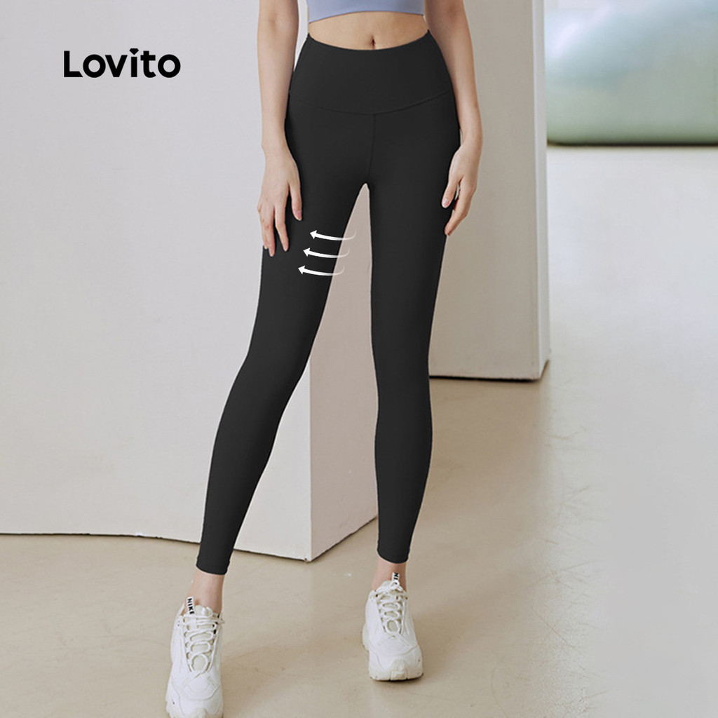 Lovito Leggings Esportivas Controle de Barriga Levantamento de Bumbum Elástico em Quatro Direções rosa LNA133049