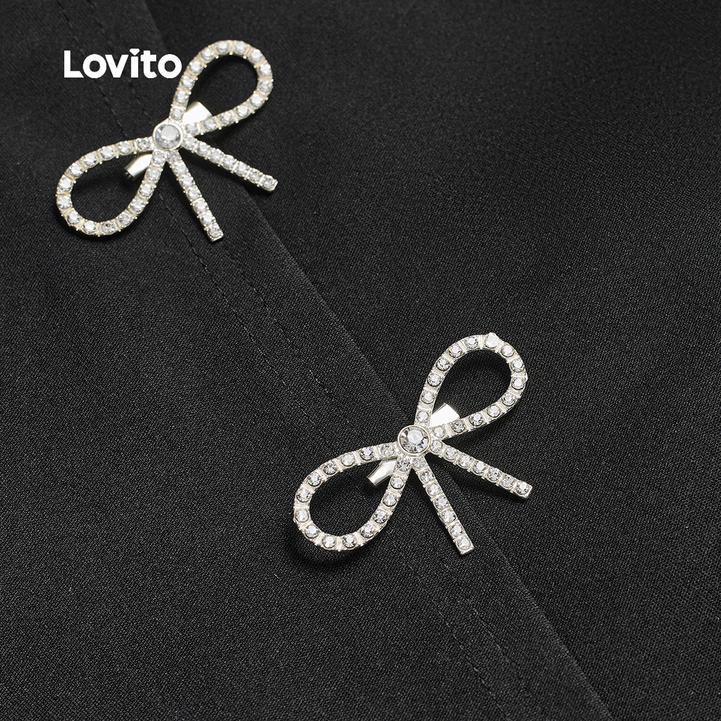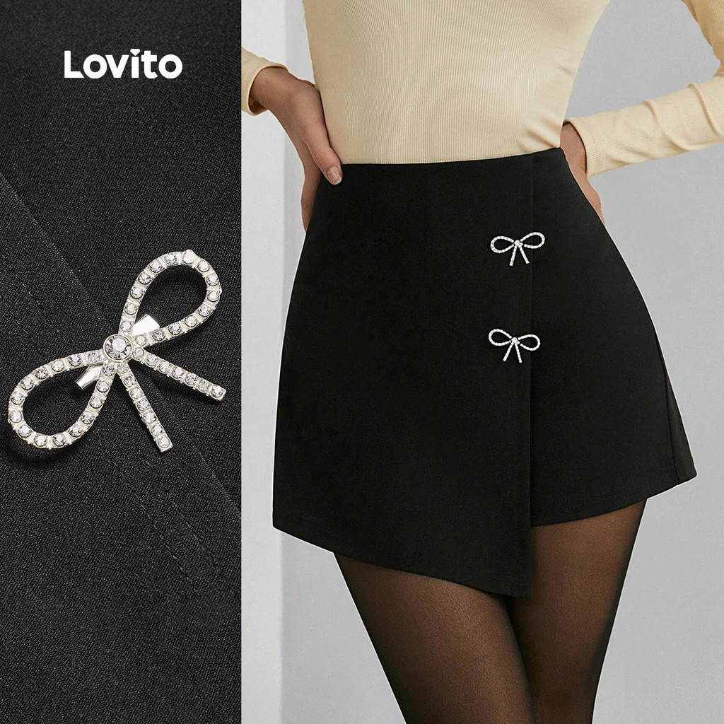Lovito Shorts Elegantes Fivela de Strass Arco Falso 2 em 1 Shorts Pretos Primavera/verão para Mulheres L173AD300