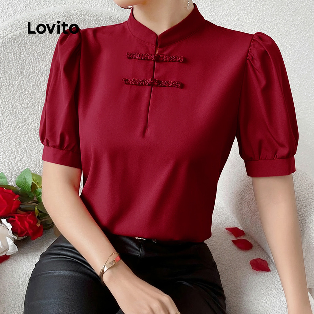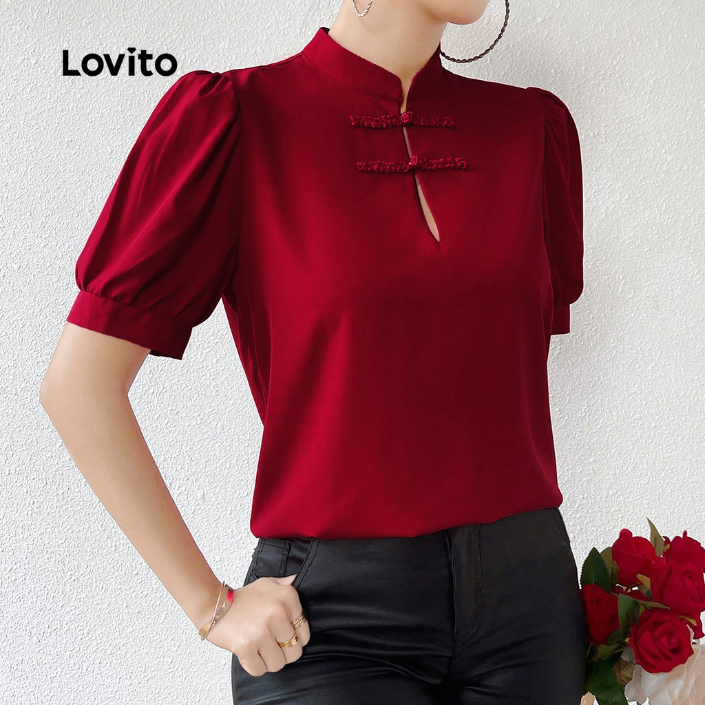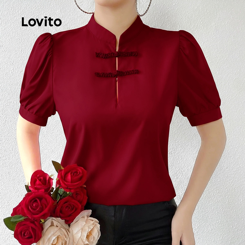 Lovito Blusa Vermelha Feminina Estilo Chinês Casual Cheongsam Primavera/Verão L157ED1023