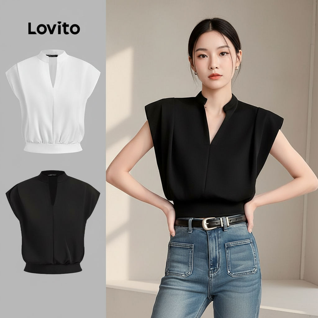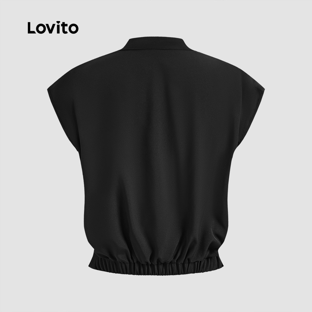 Lovito Blusa Casual Dupla Camada Plissada Feminina Verão Primavera L128ED374