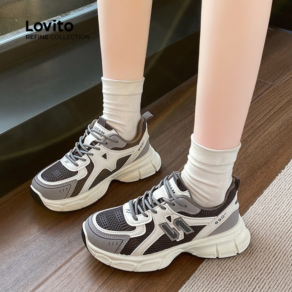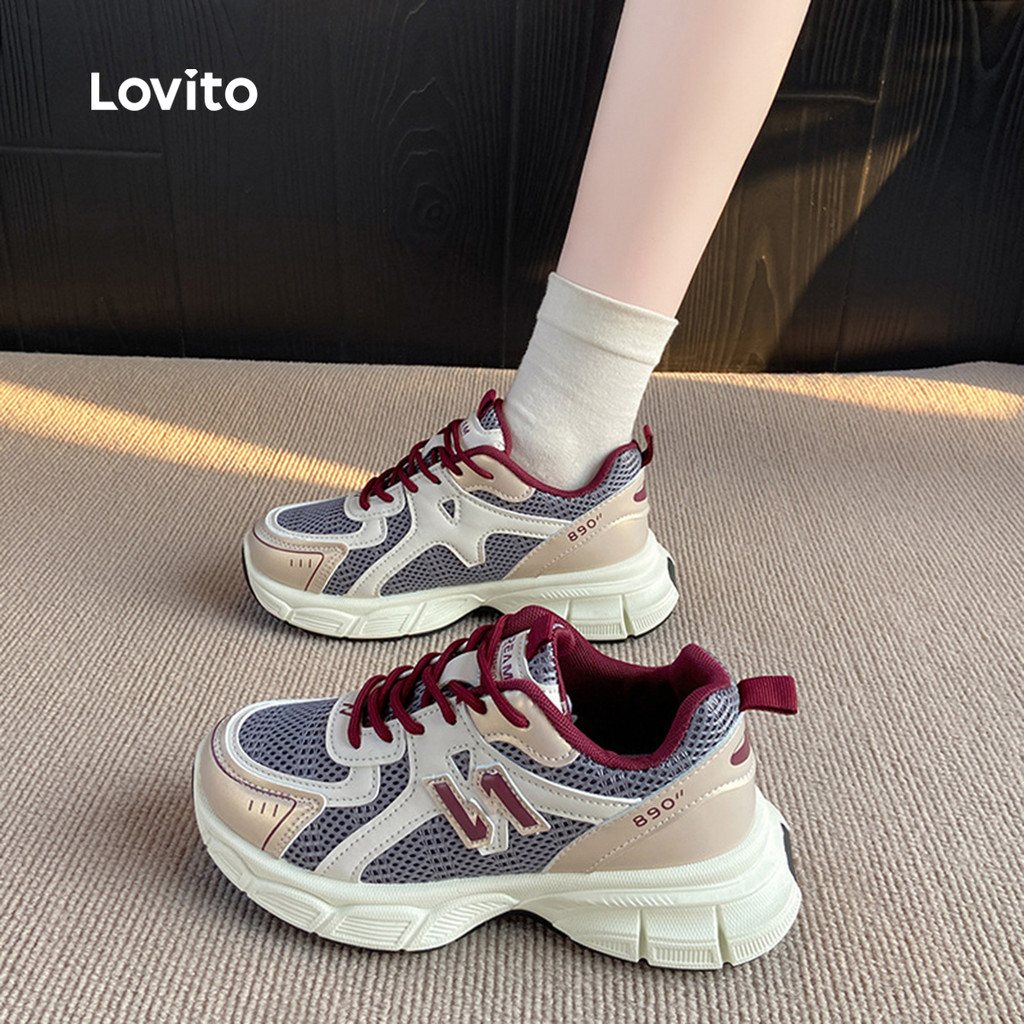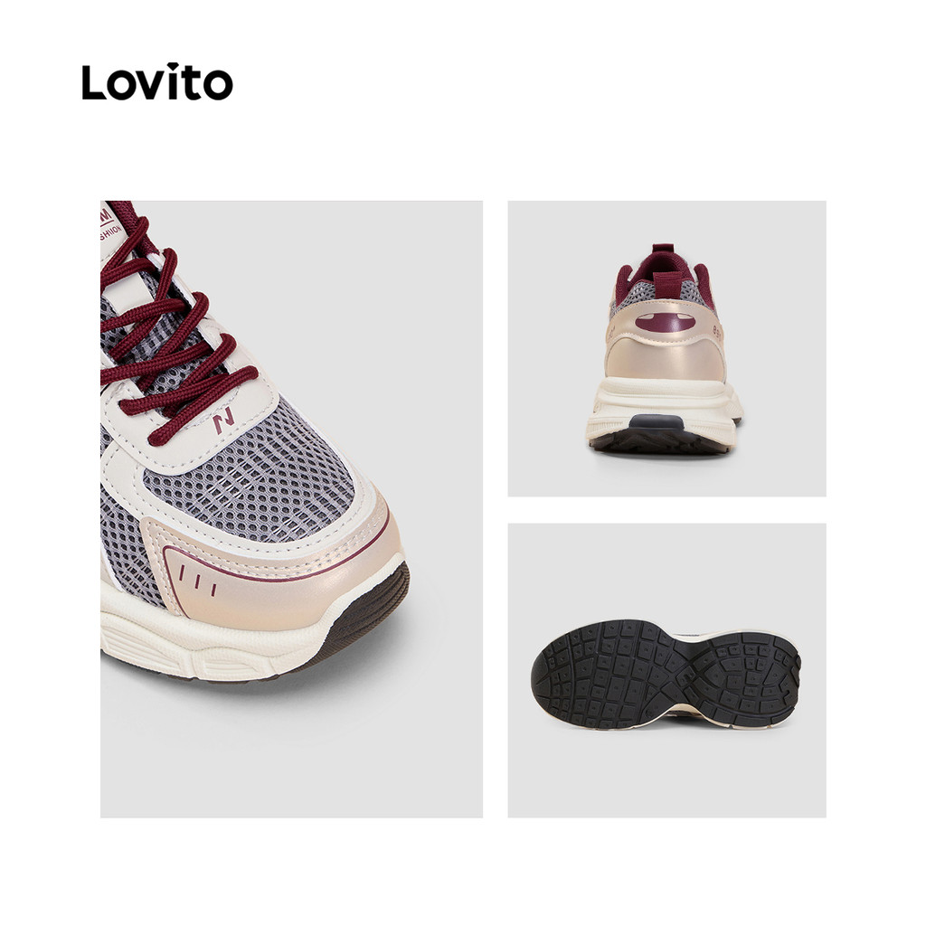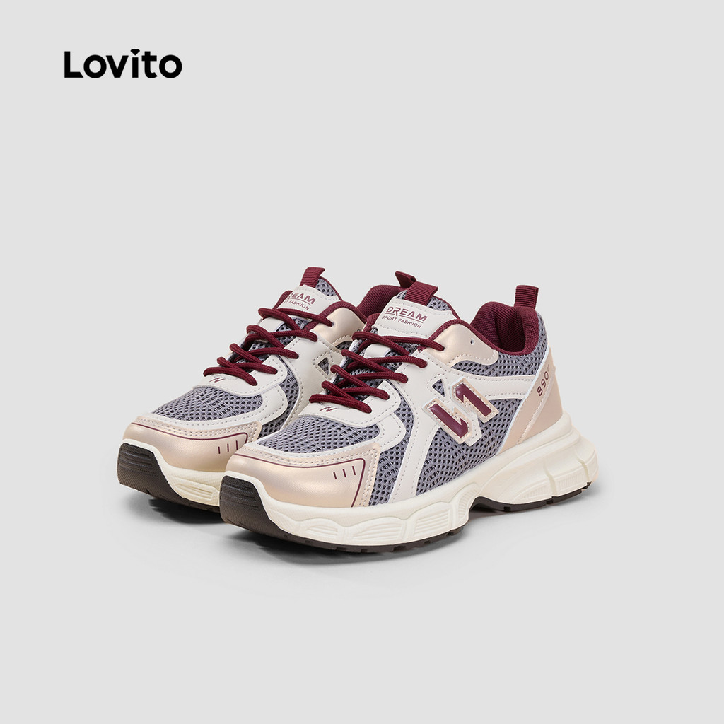 Lovito Refine Tênis Casual com Contraste de Malha Dad Retrô Primavera/Verão Vermelho LR13E430