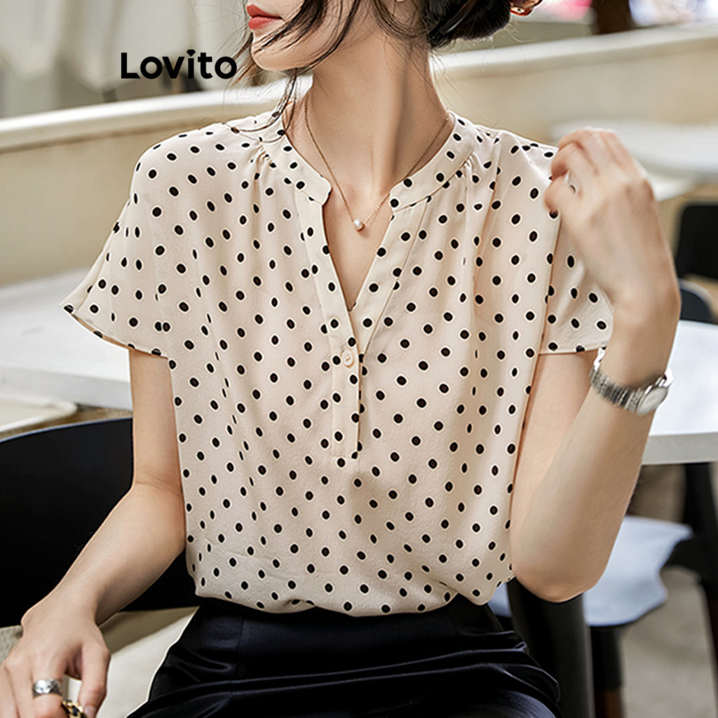 Lovito Blusa Socialite Feminina Com Estampa Poá E Botões Frontais LNE27216 (Multicolorida)