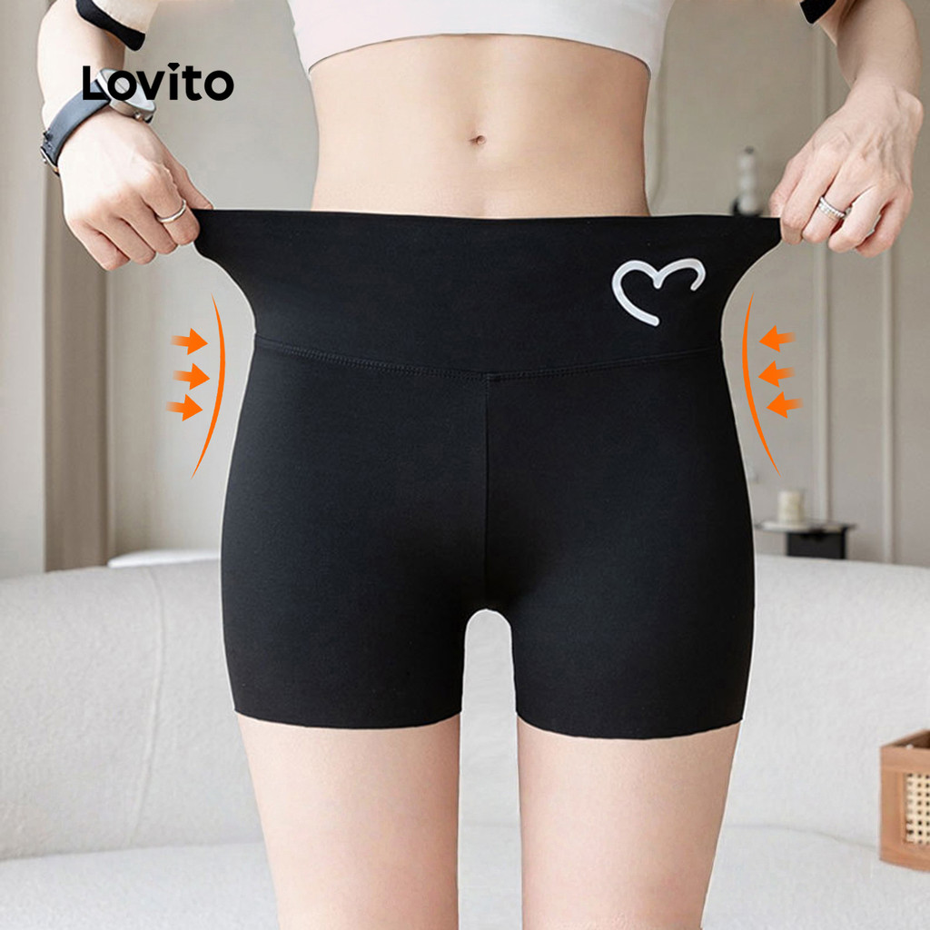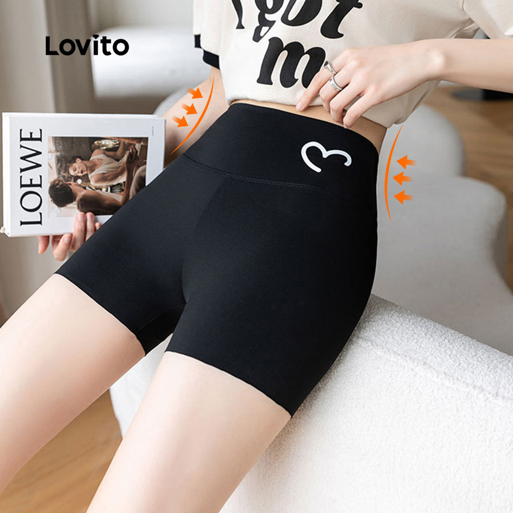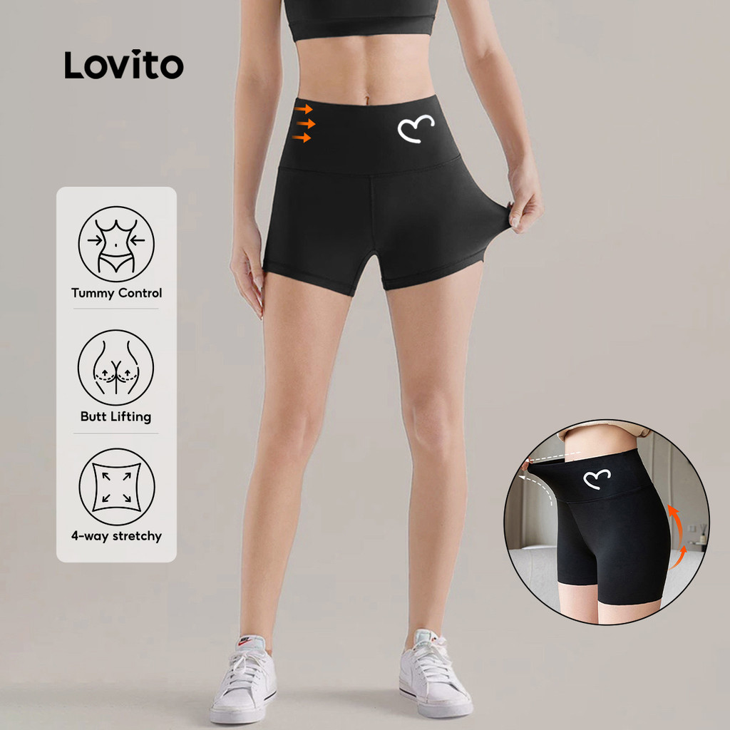 Lovito Shorts Esportivos para Modelar Cintura e Levantar Glúteos com Elasticidade Dupla LNE120015