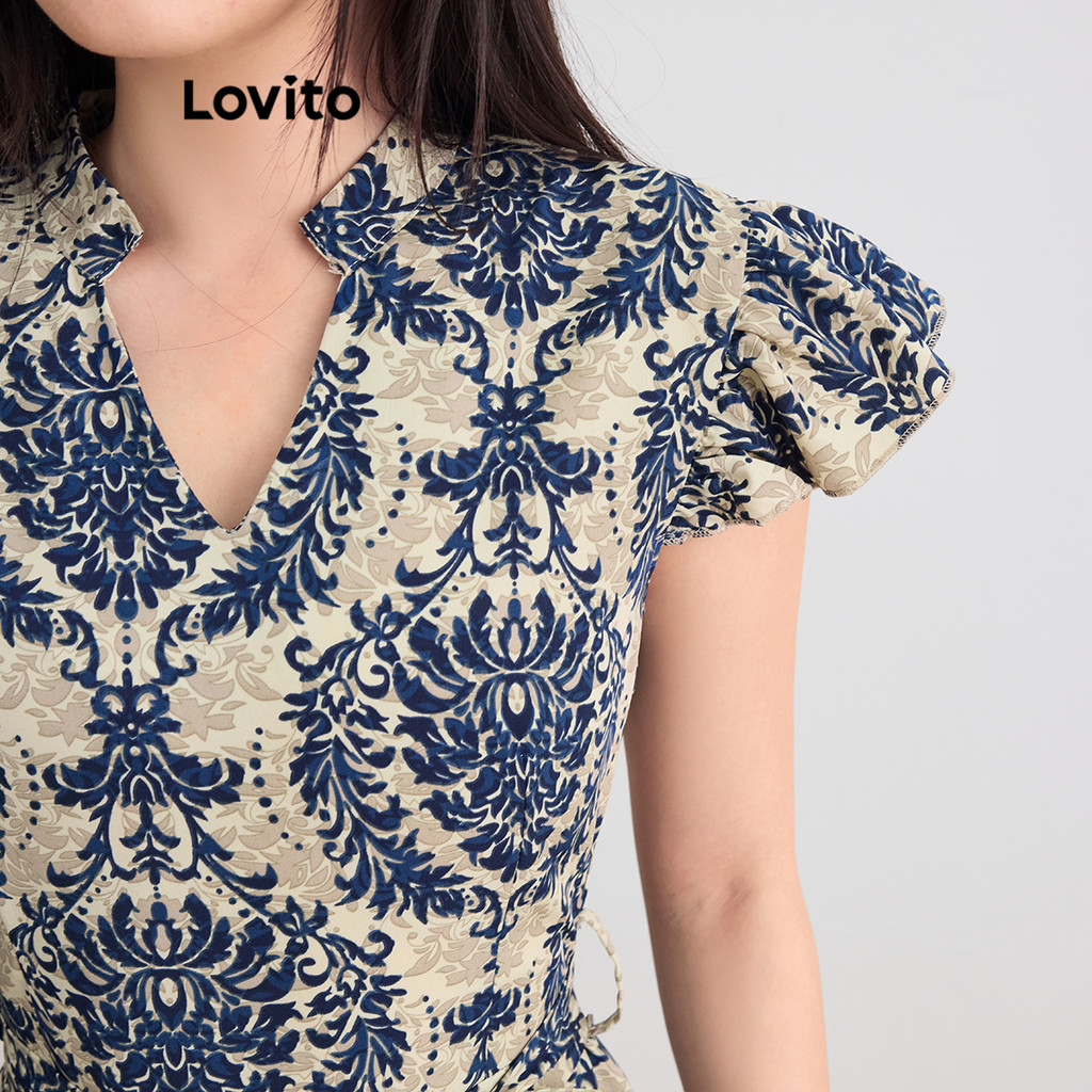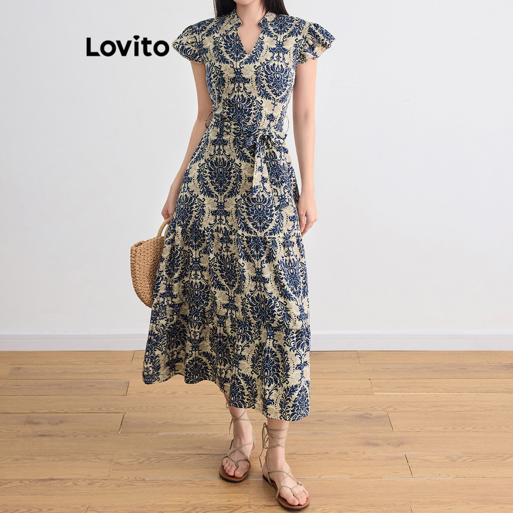 Lovito Vestido Feminino Casual Com Estampa Tribal E Babados Na Bainha, Para Verão/primavera L105MD093