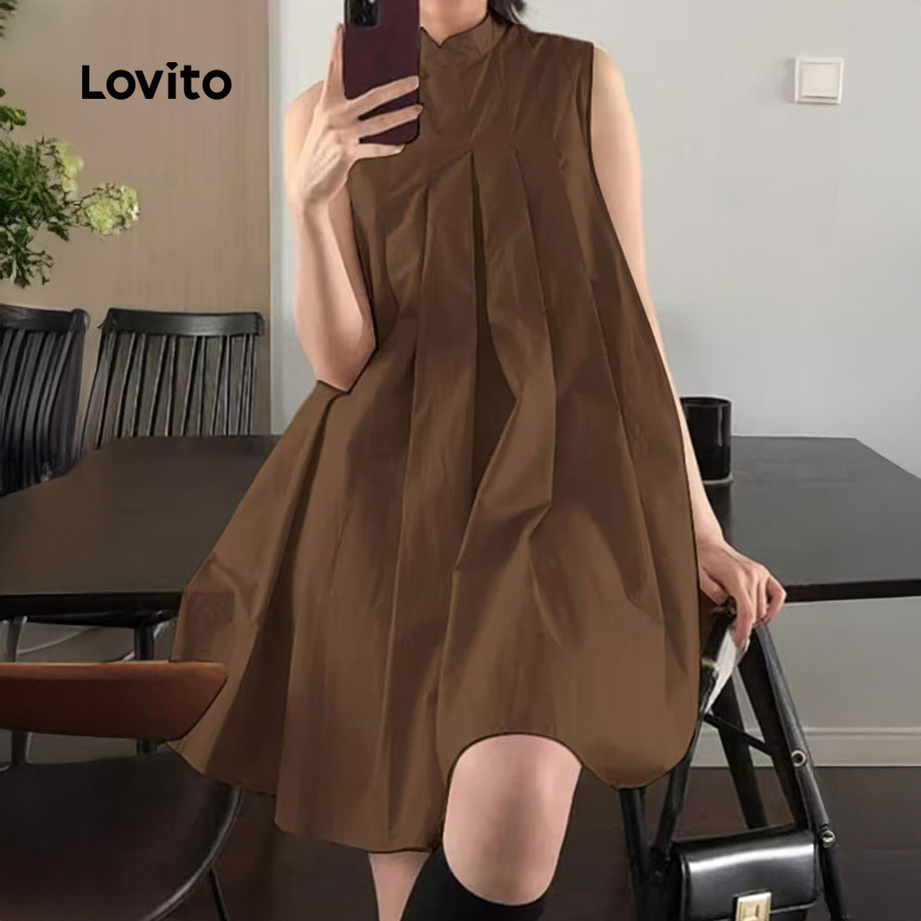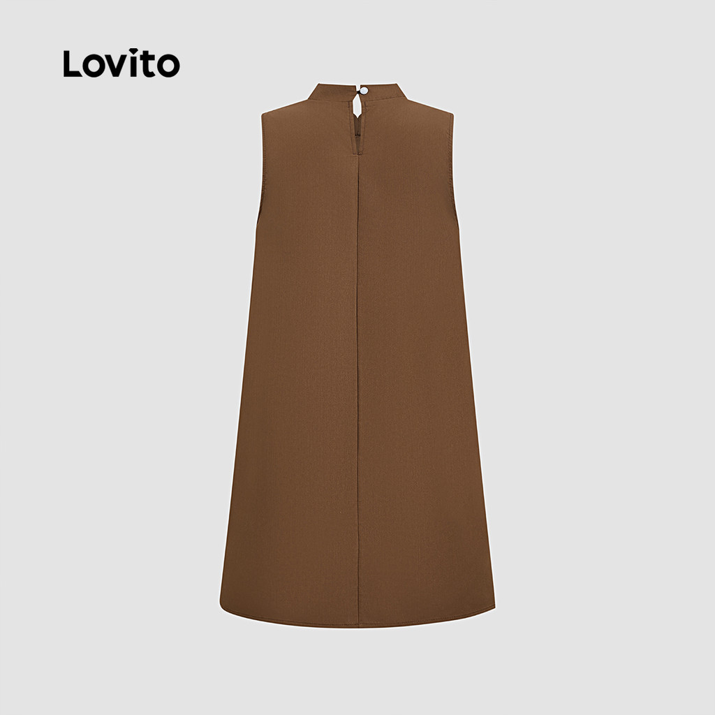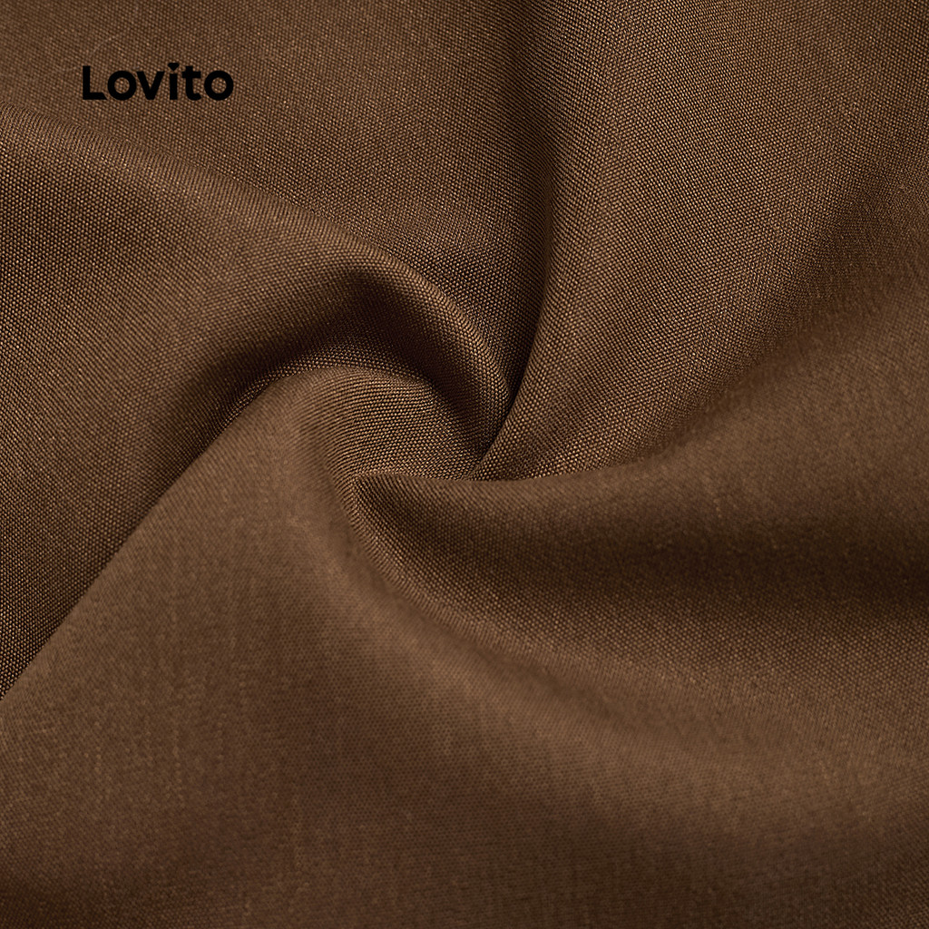 Lovito Vestido Casual Novo Estilo Marrom Feminino Moda Primavera/verão Vestido Marrom para Mulheres. L171AD119
